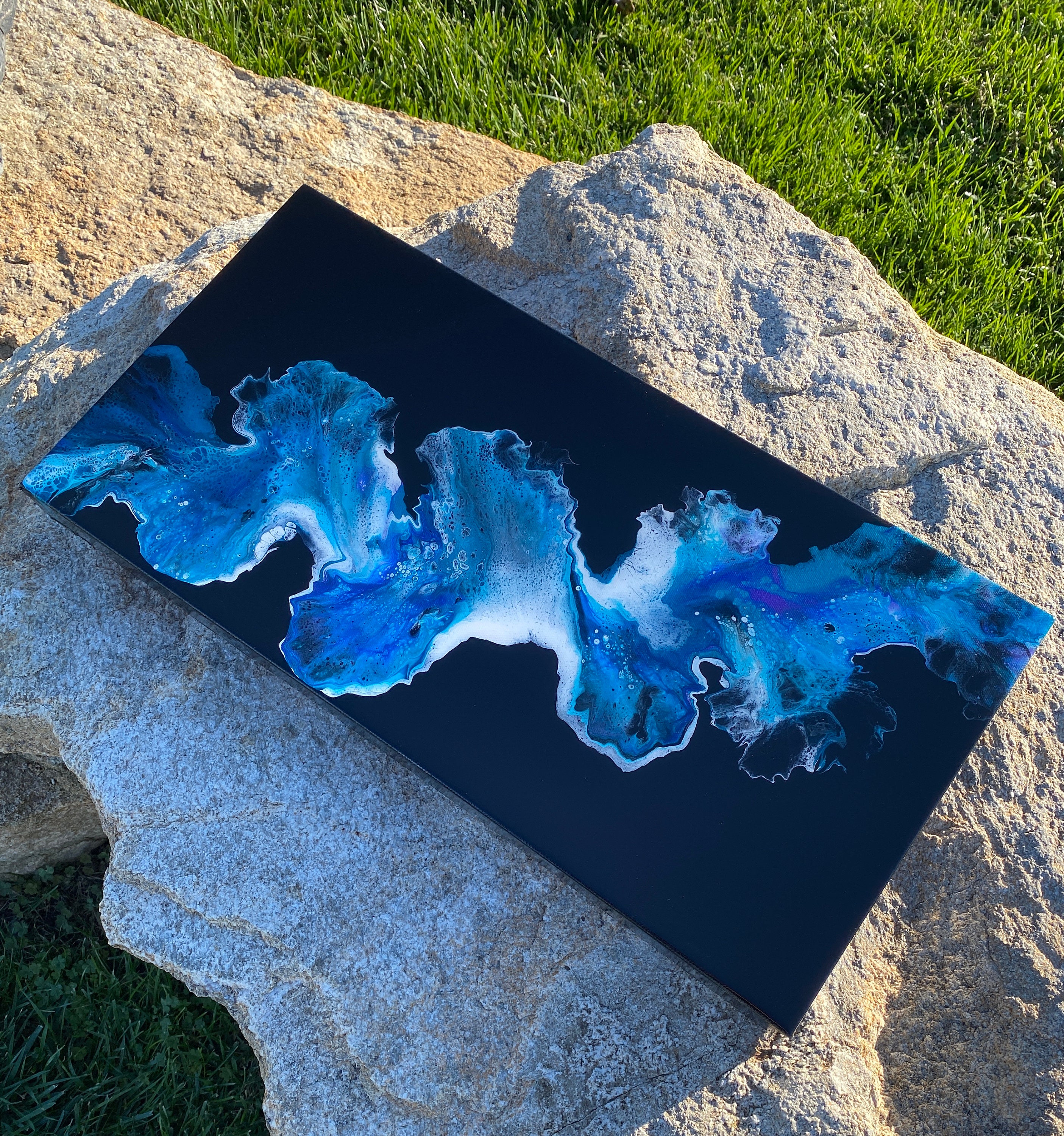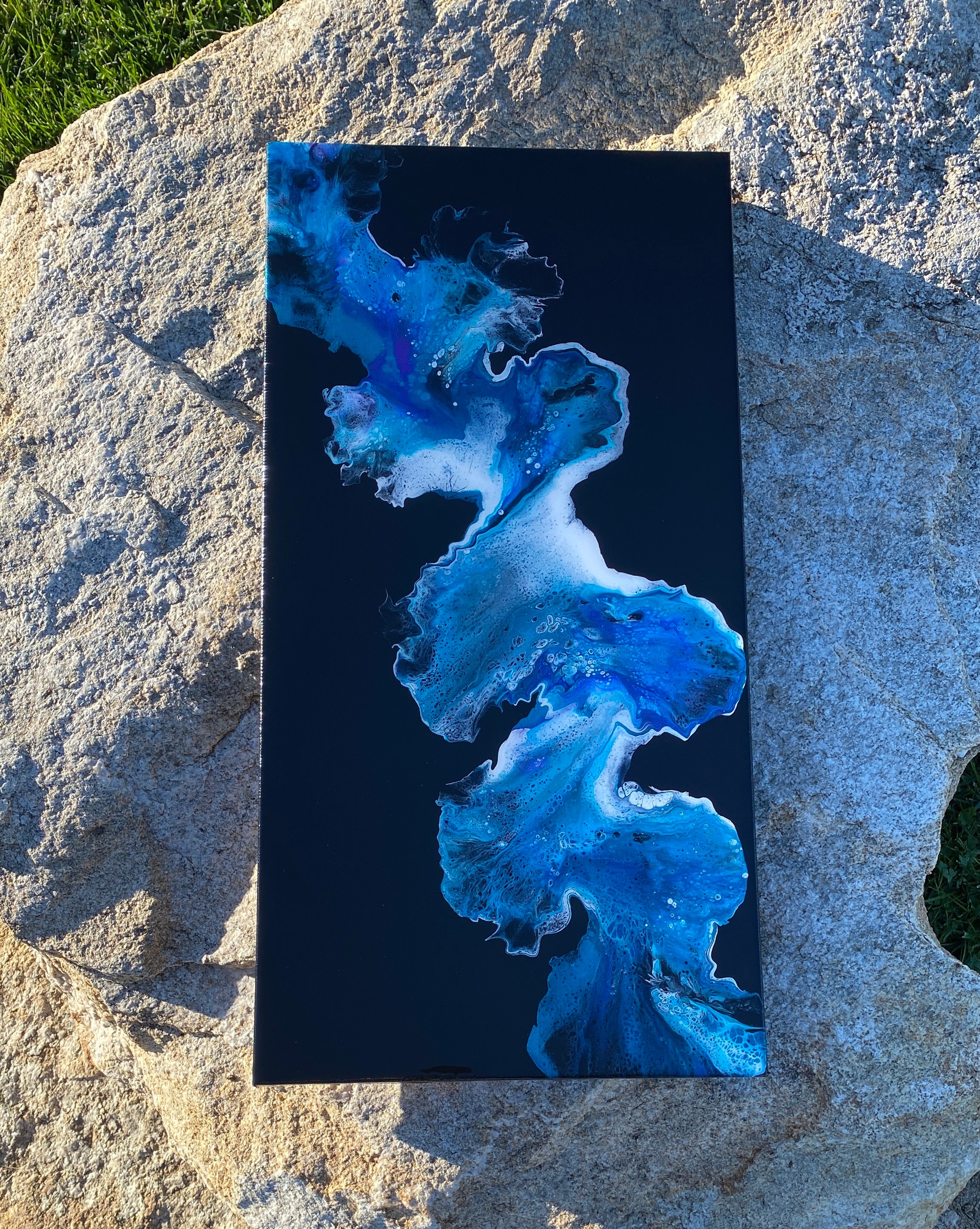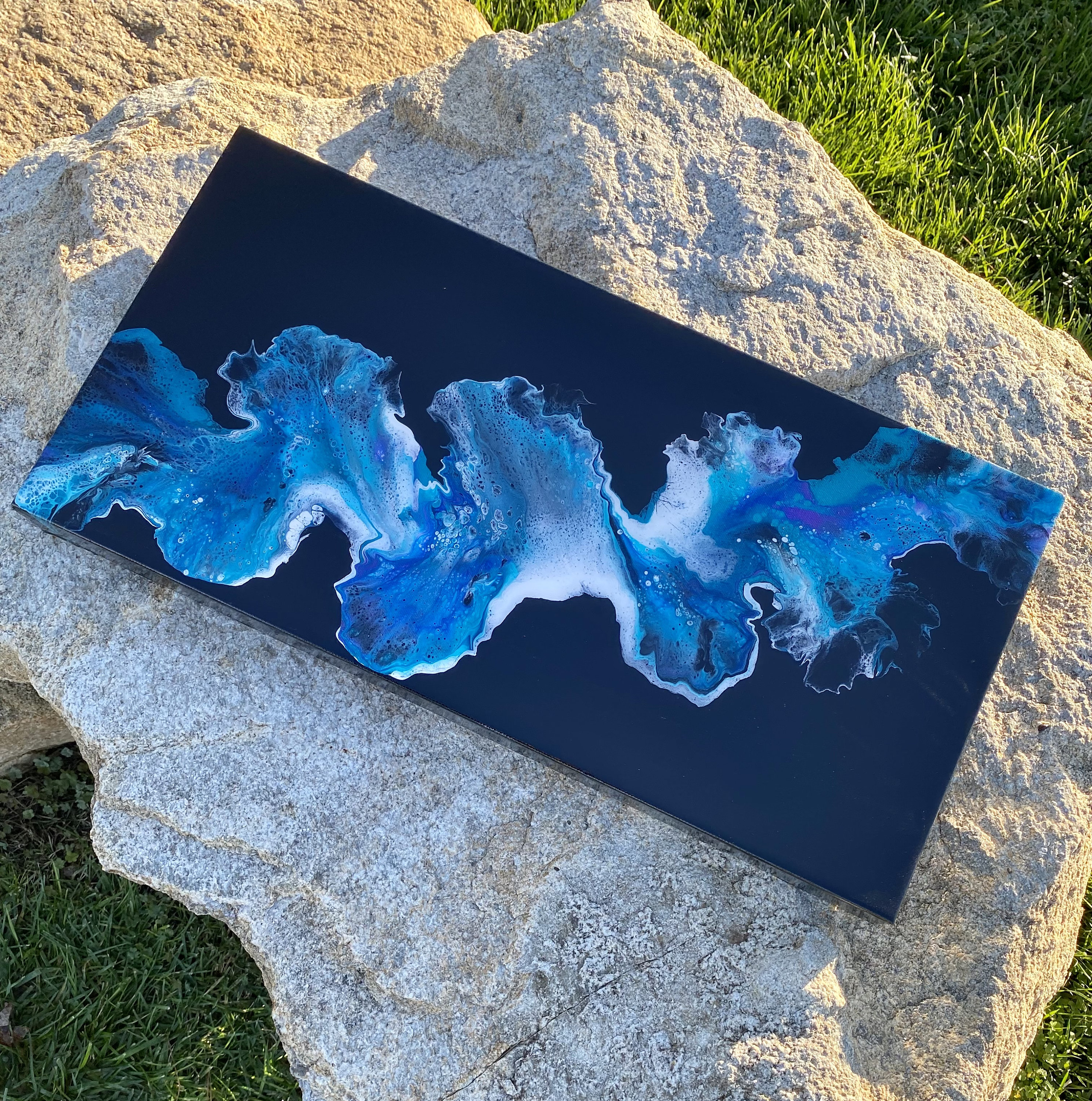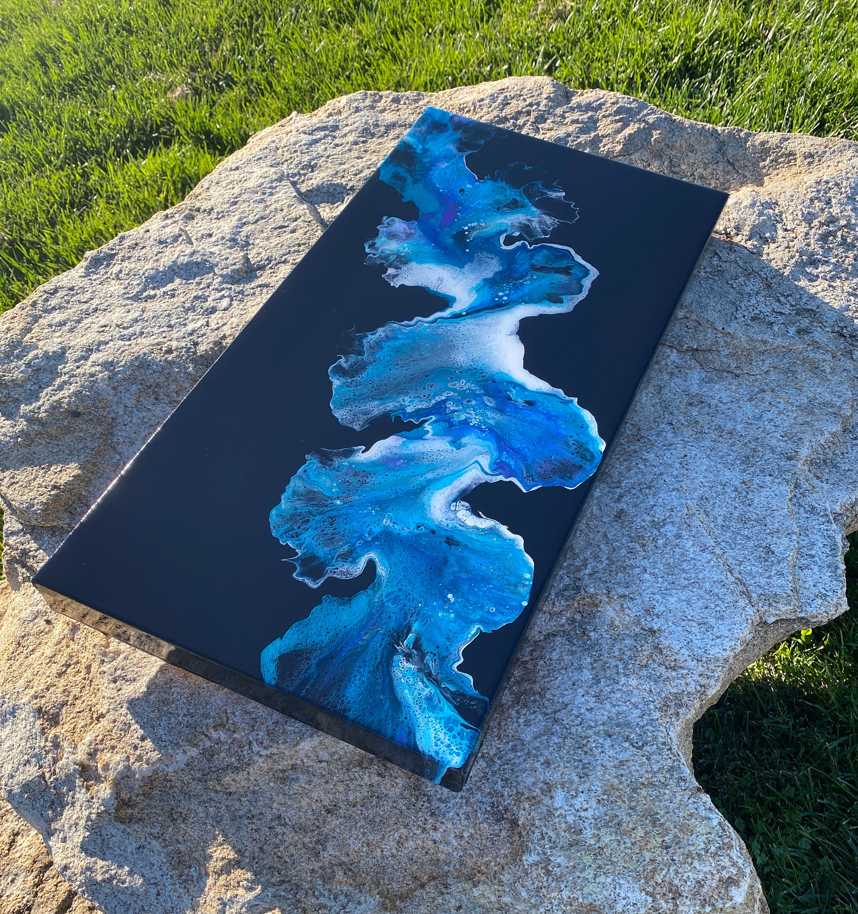 Original art work- stunning abstract painting on gallery wrapped level 3 canvas done in a dutch pour style utilizing acrylic paints and topped with a coat of resin to really shine.