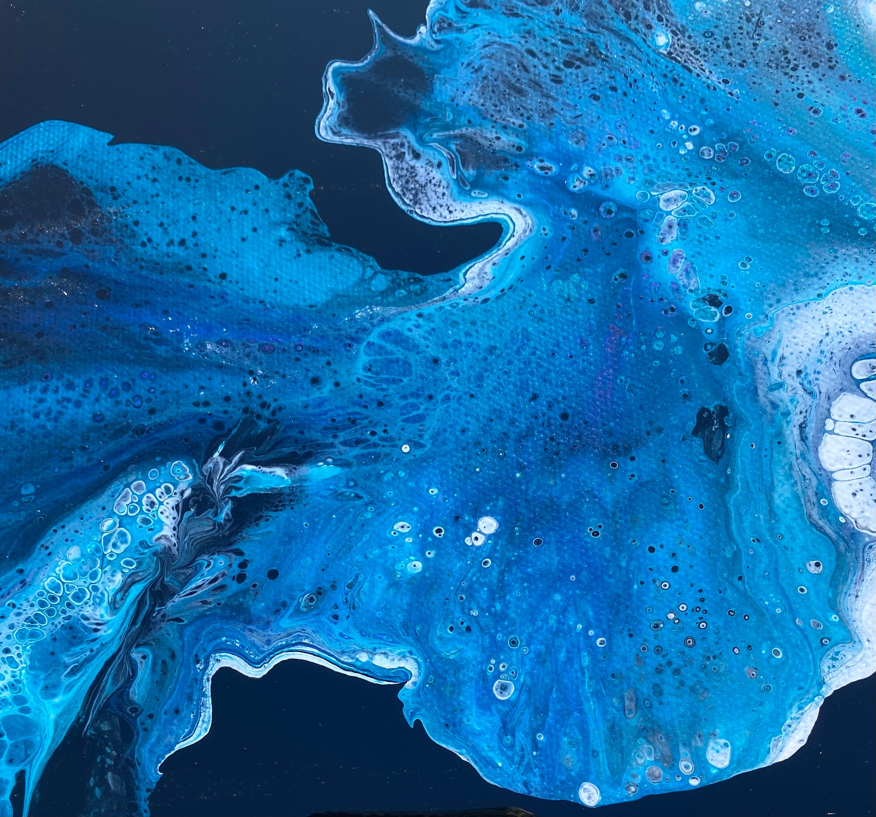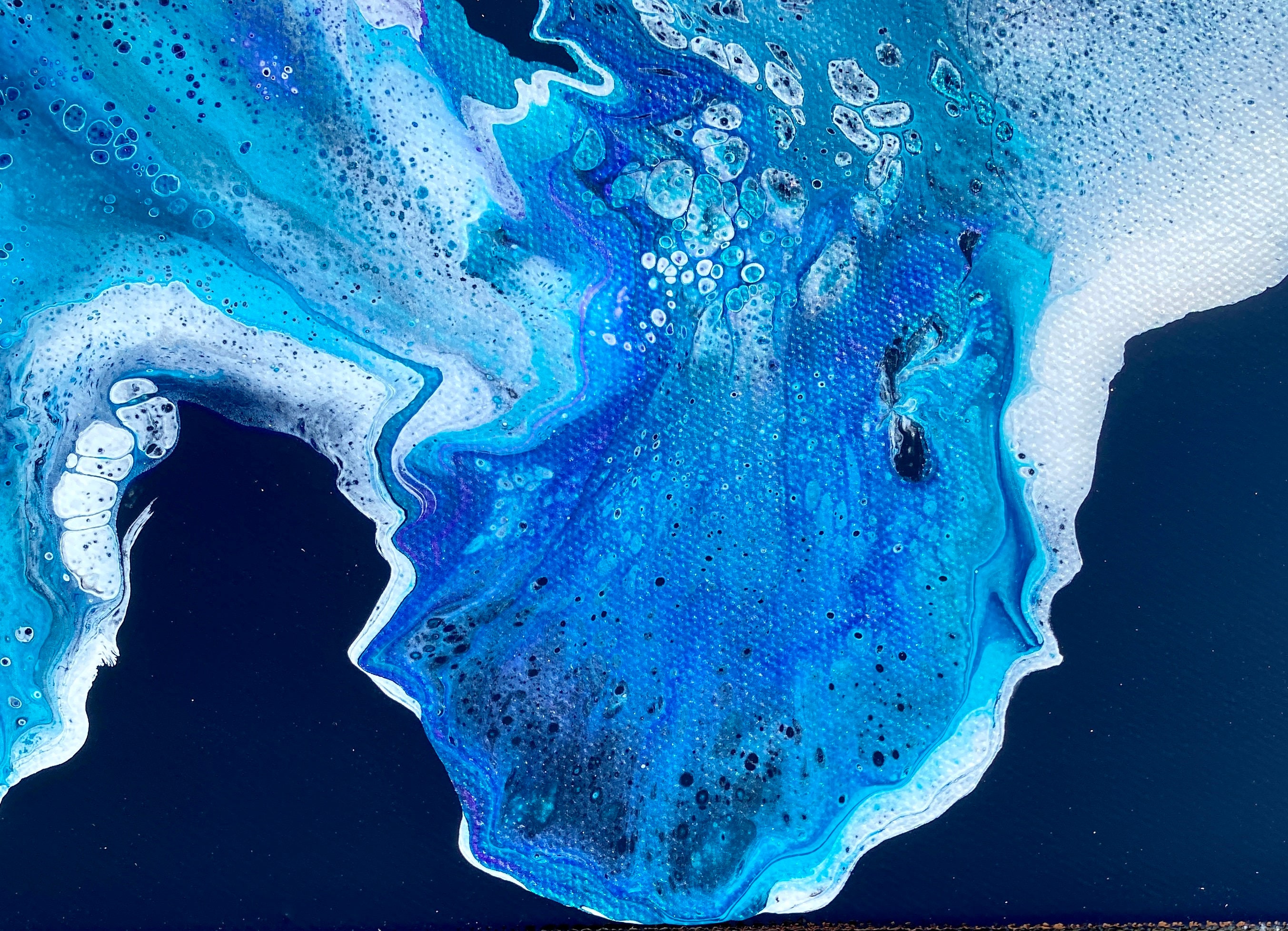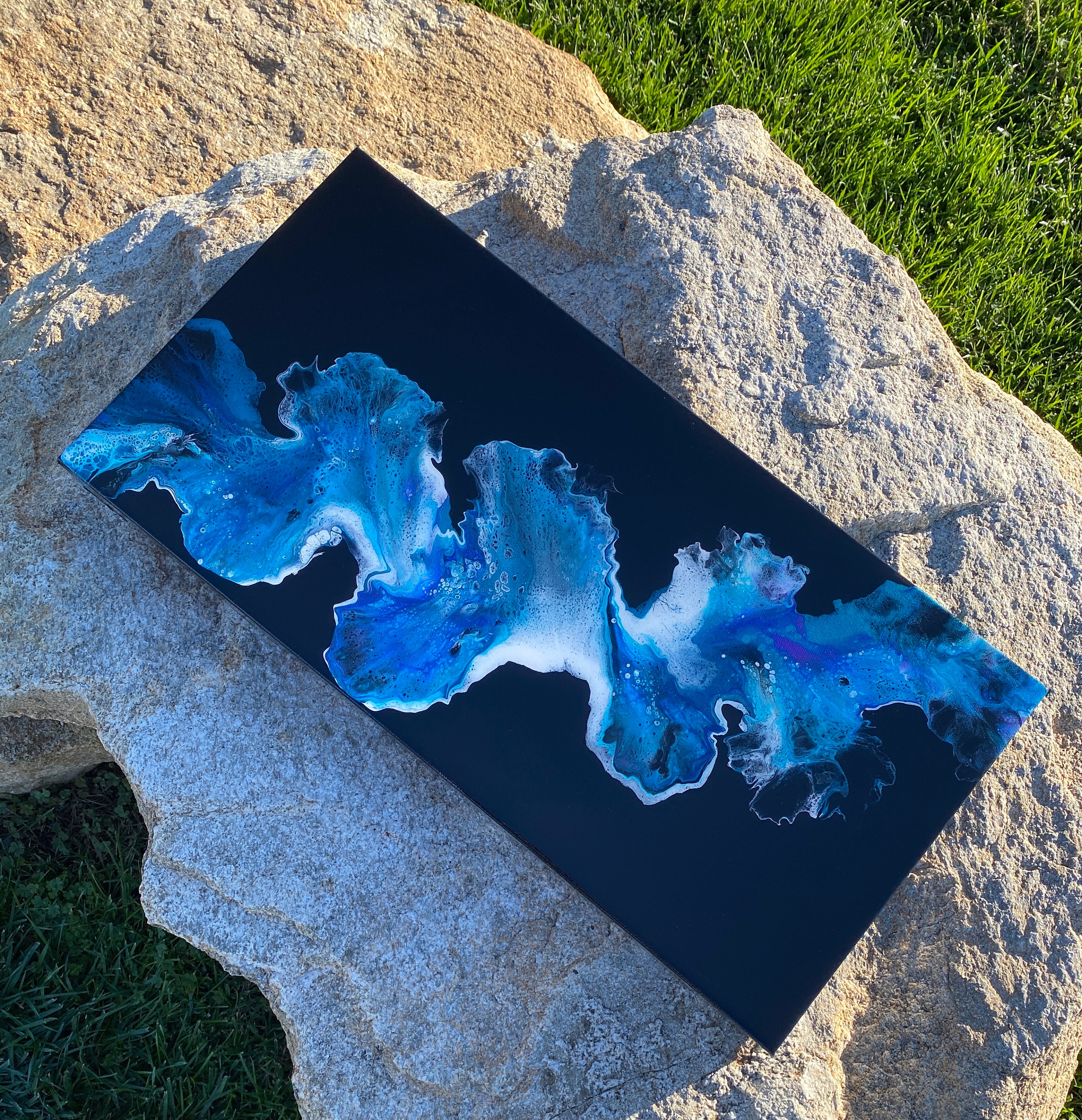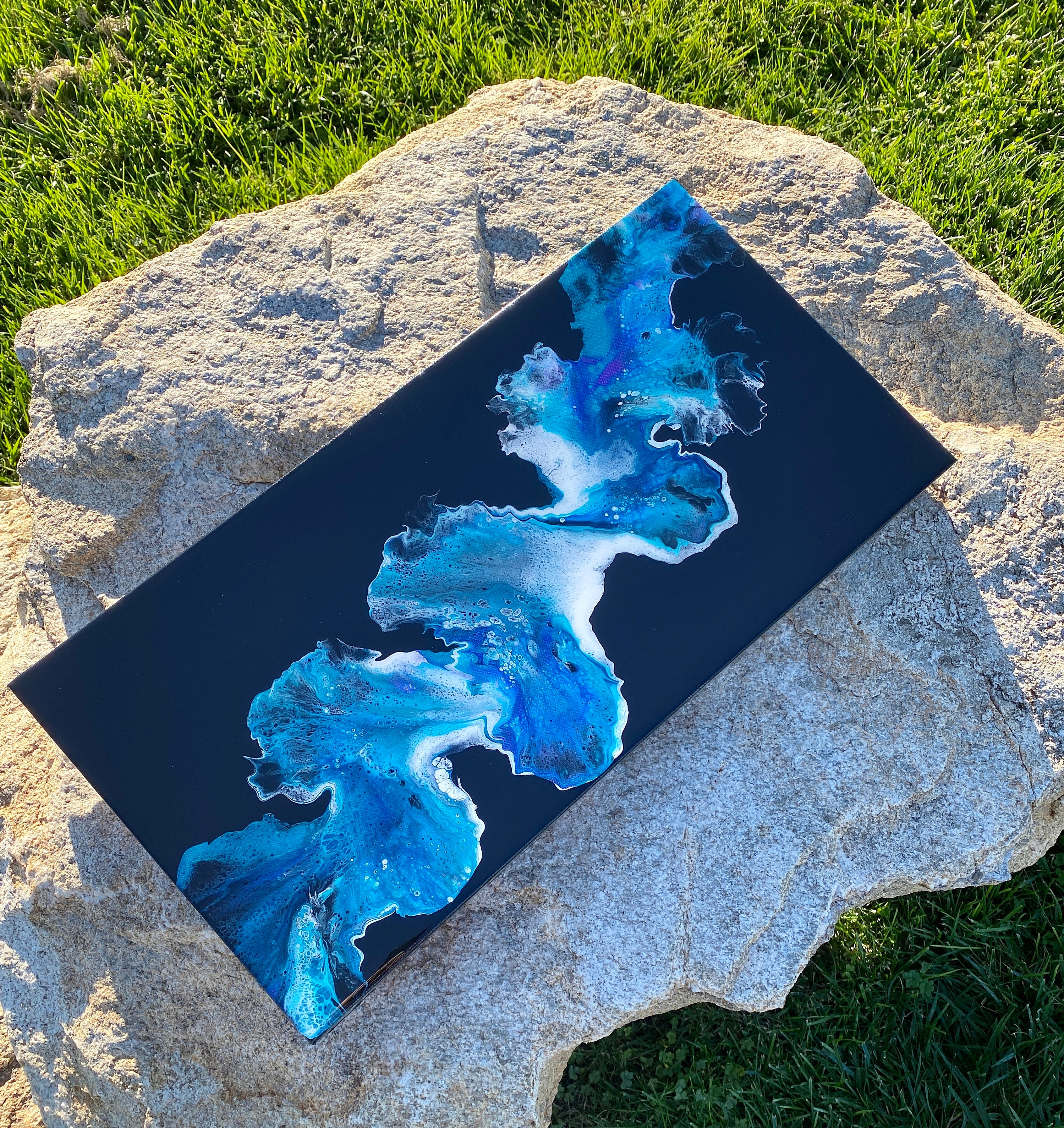 Original art work- stunning abstract painting on gallery wrapped level 3 canvas done in a dutch pour style utilizing acrylic paints and topped with a coat of resin to really shine.