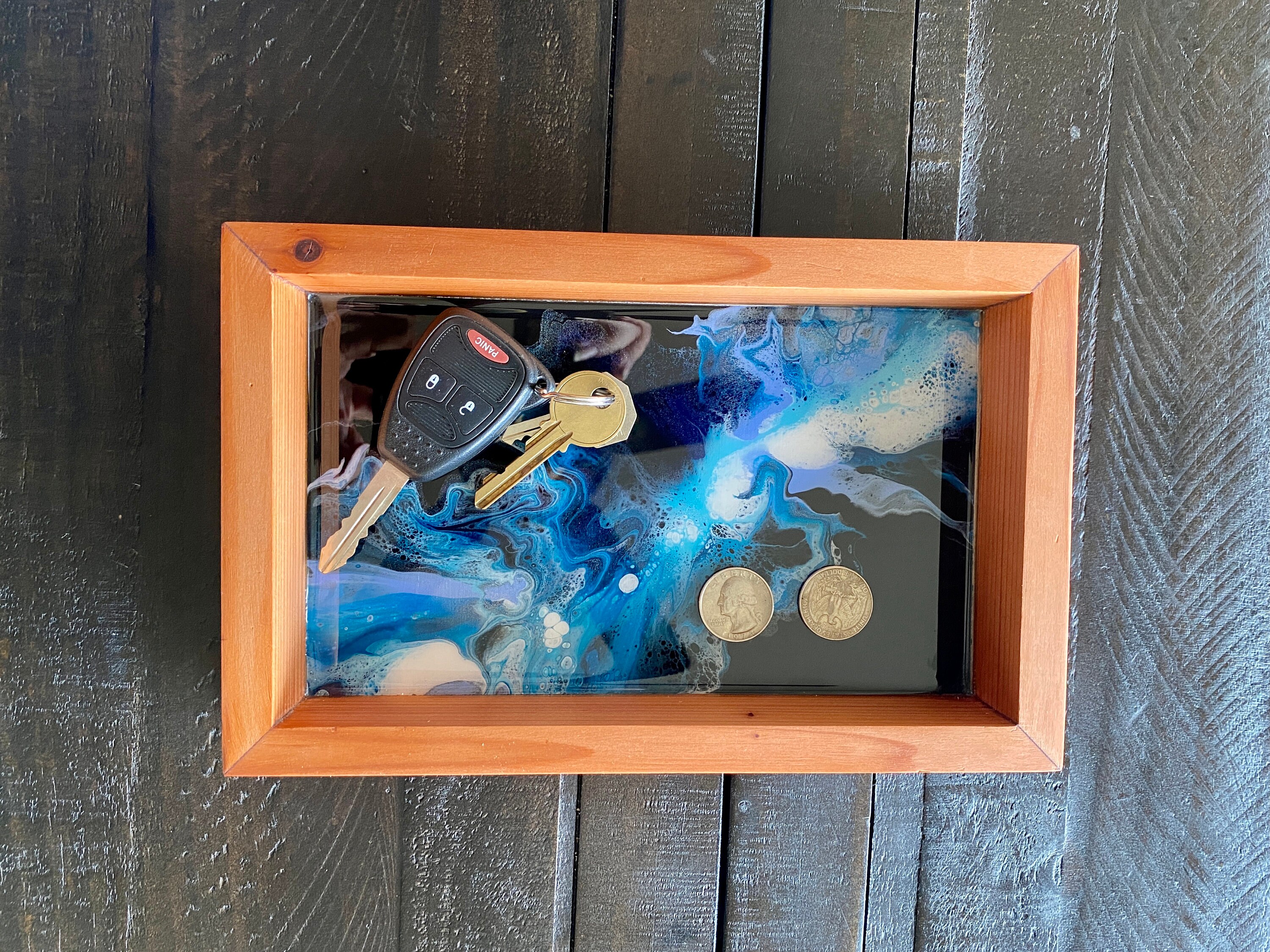 This is a one of kind gift for someone or for yourself. It is a beautiful piece to leave out in your entryway to place your keys, spare change, anything from your pockets. Tray can also be turned and a hanger put on the back if you wish to display it as a picture.