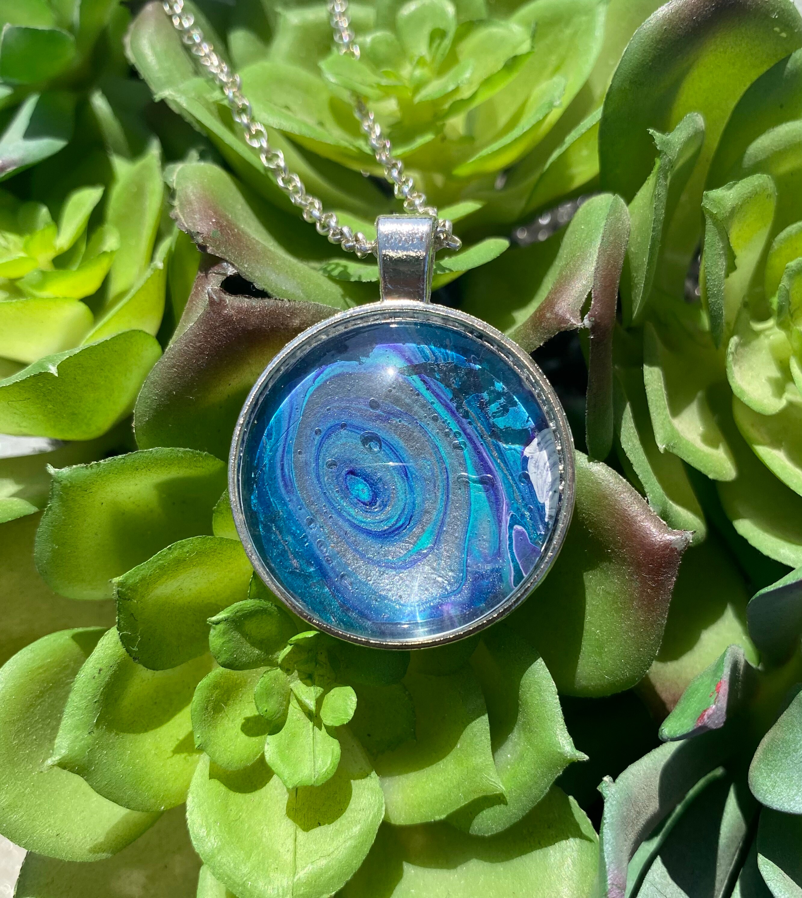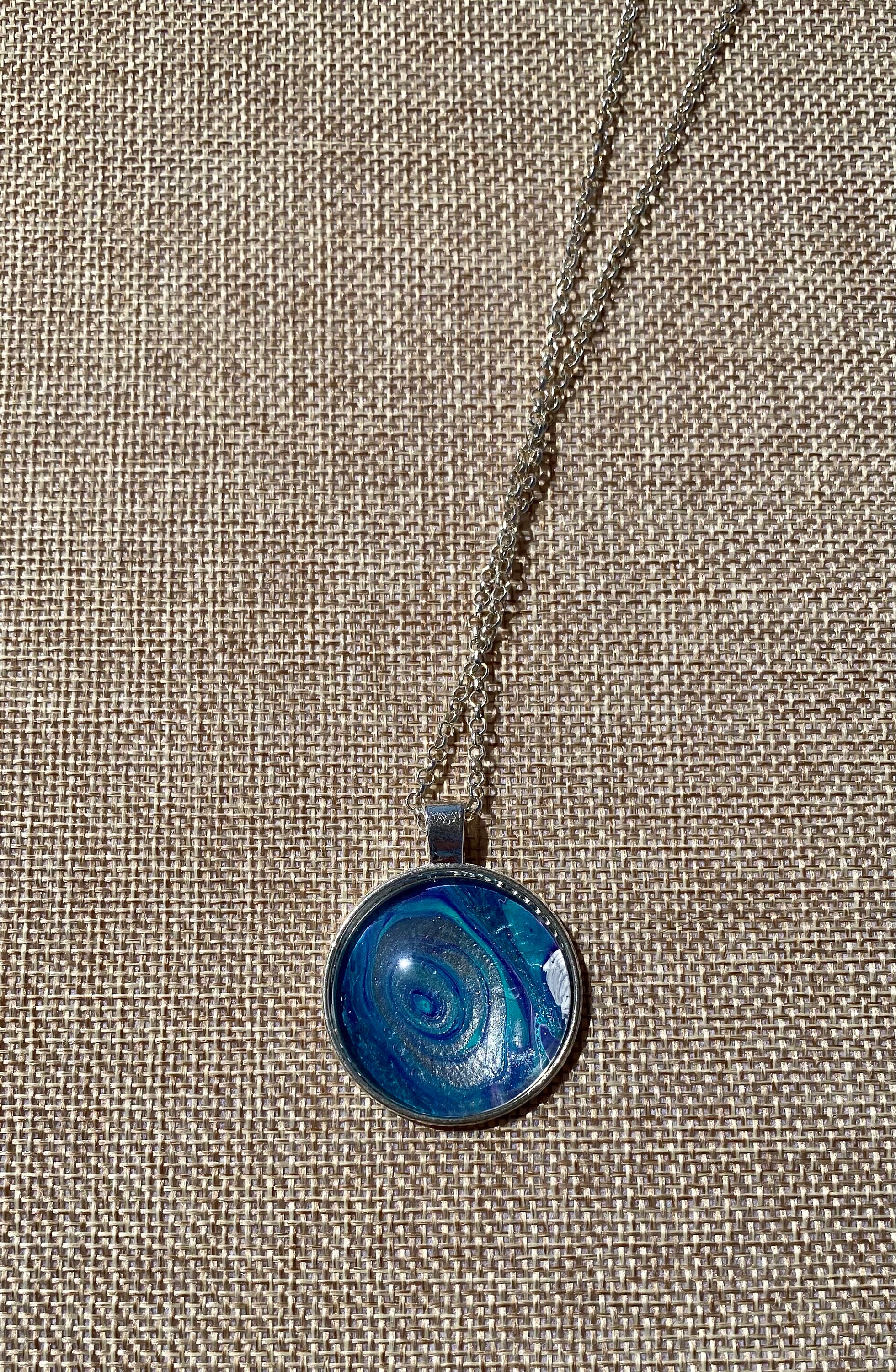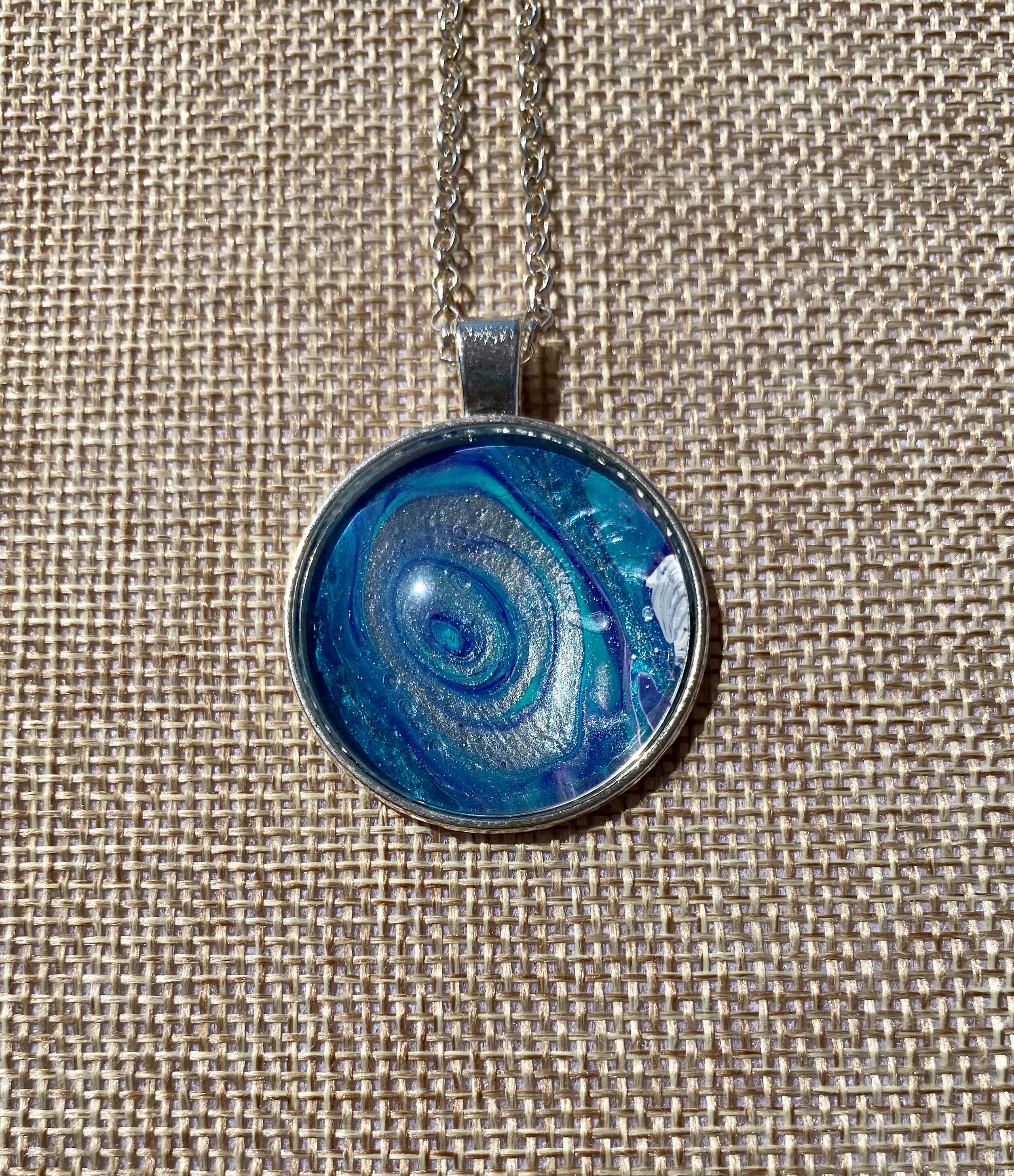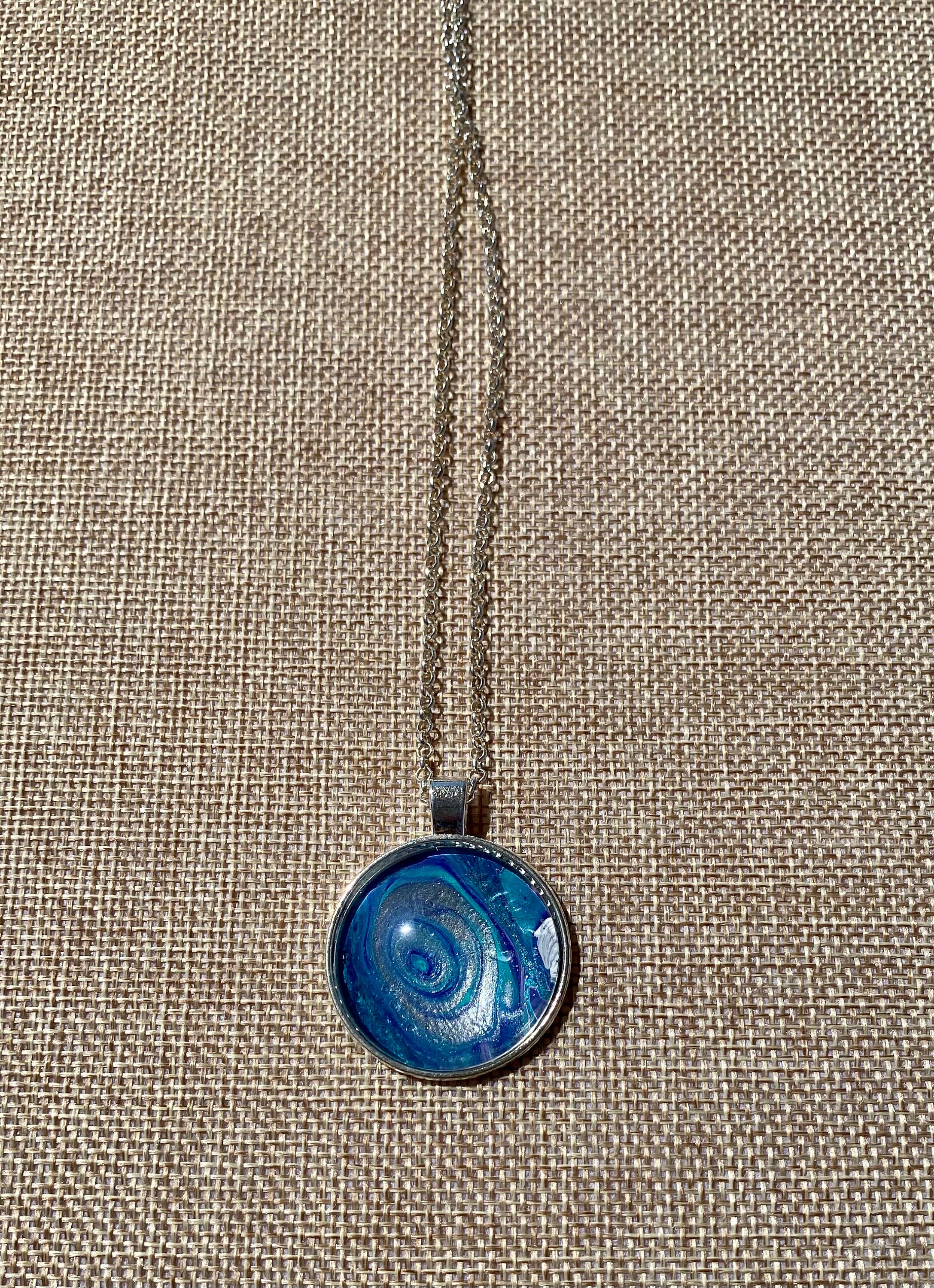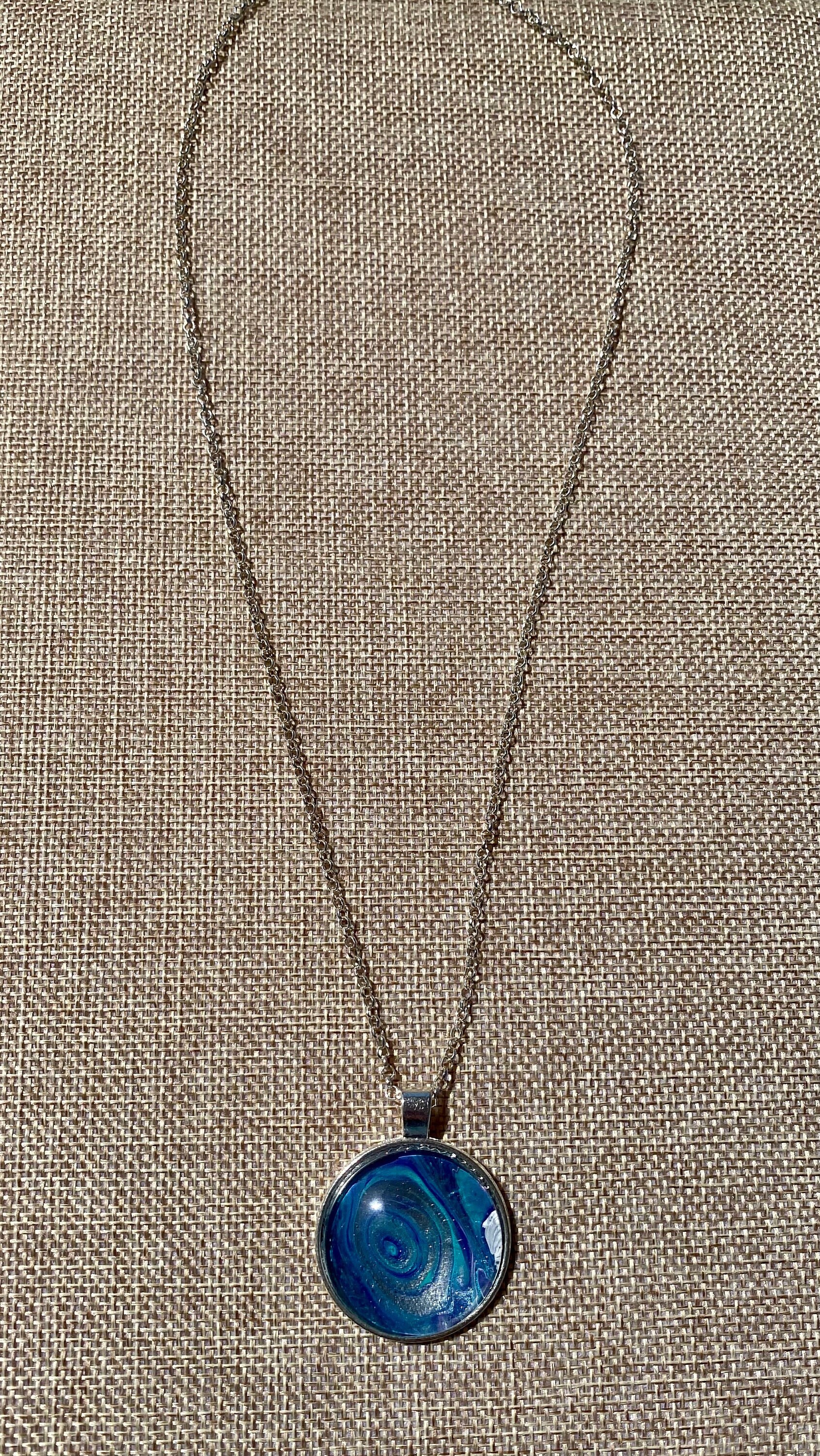 I truly enjoy mixed media art. One of the arts that I enjoy is acrylic pour painting. When you create these beautiful pieces of art you create custom mixes of paint during the canvas paintings. From that session you are left with pools of gorgeous one of a kind abstract art. From that art I remove my favorite pieces and create beautiful jewelry to be enjoyed day in and day out and coordinate beautifully with your wardrobe. The necklaces make wonderful one of a kind gifts.