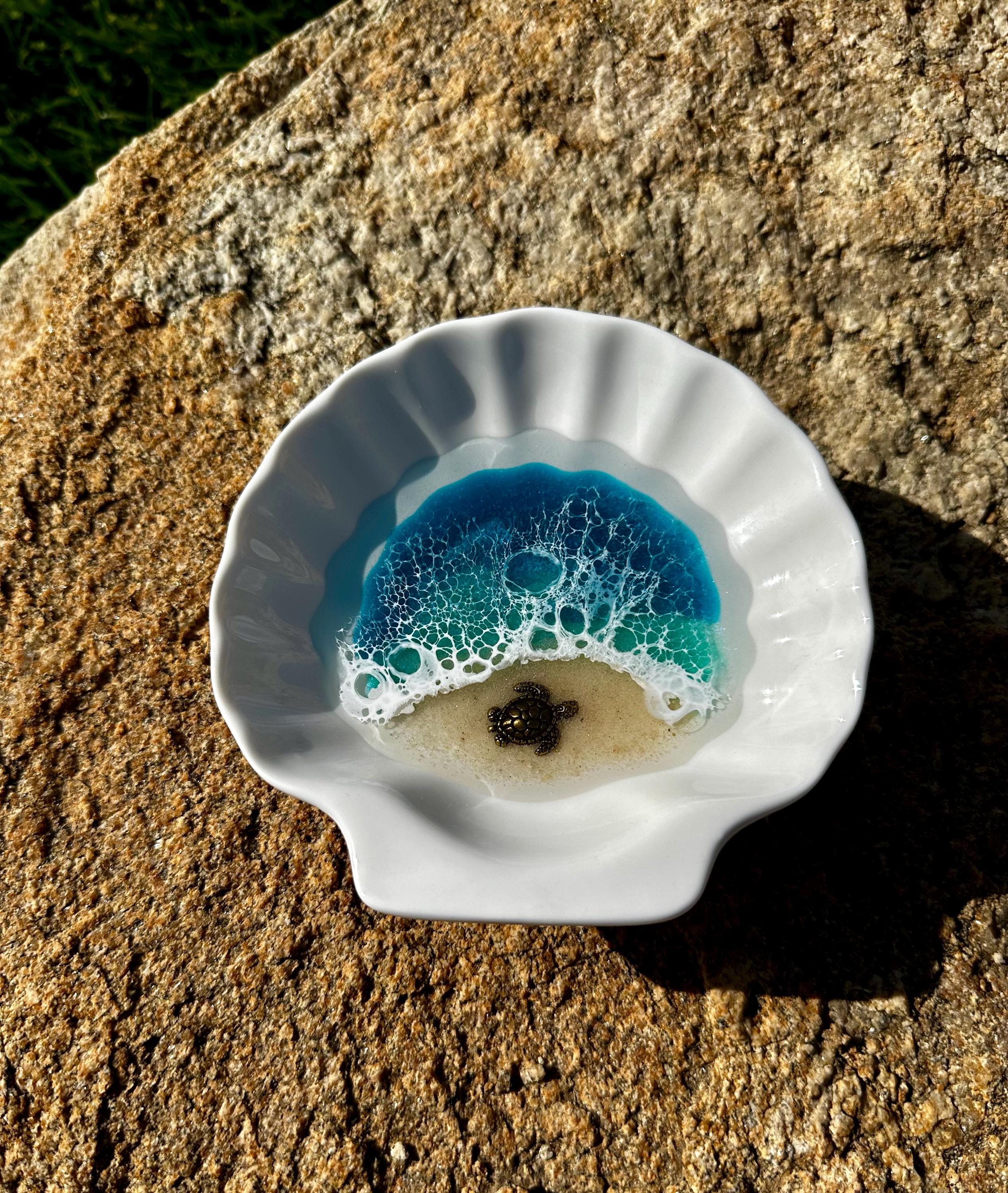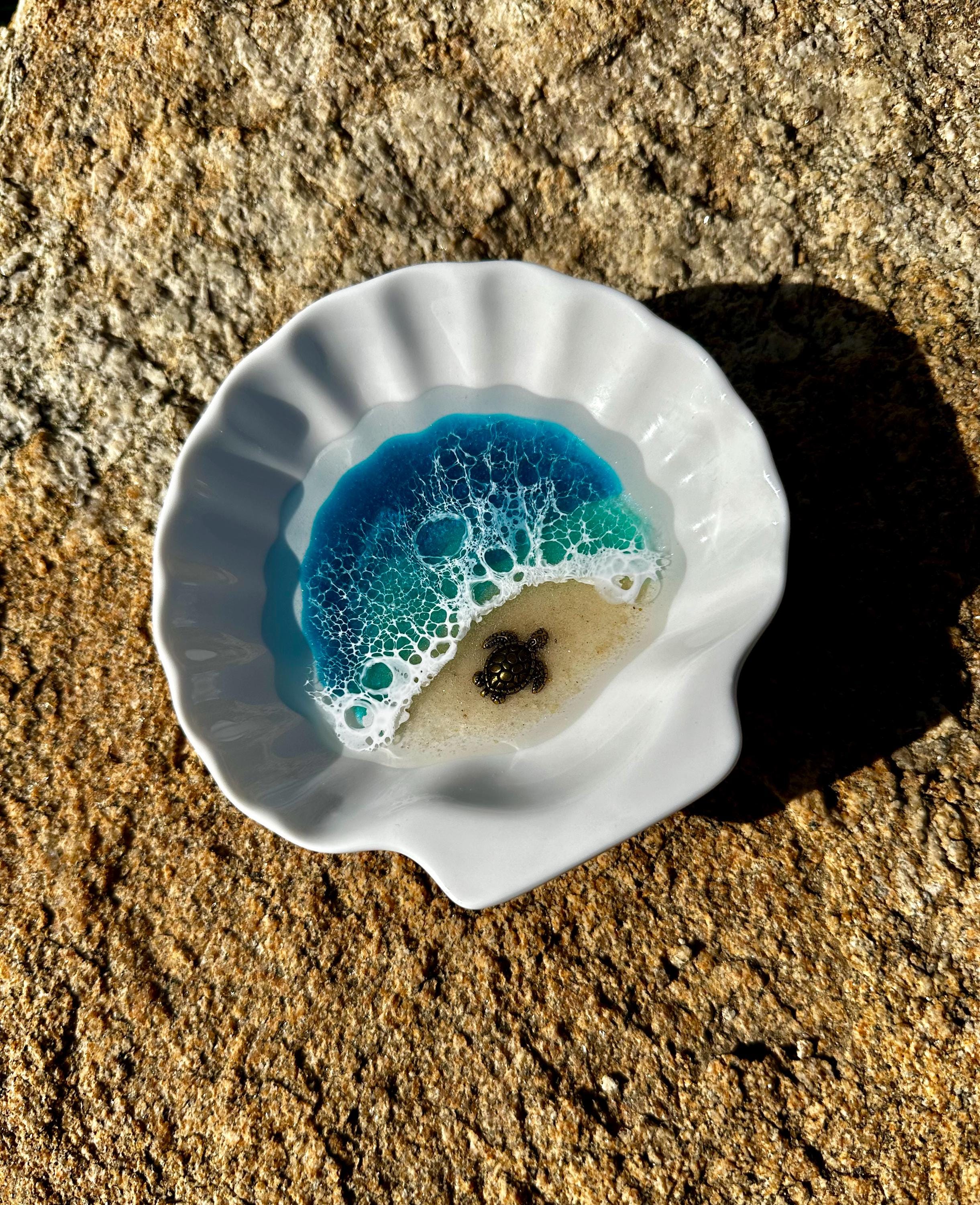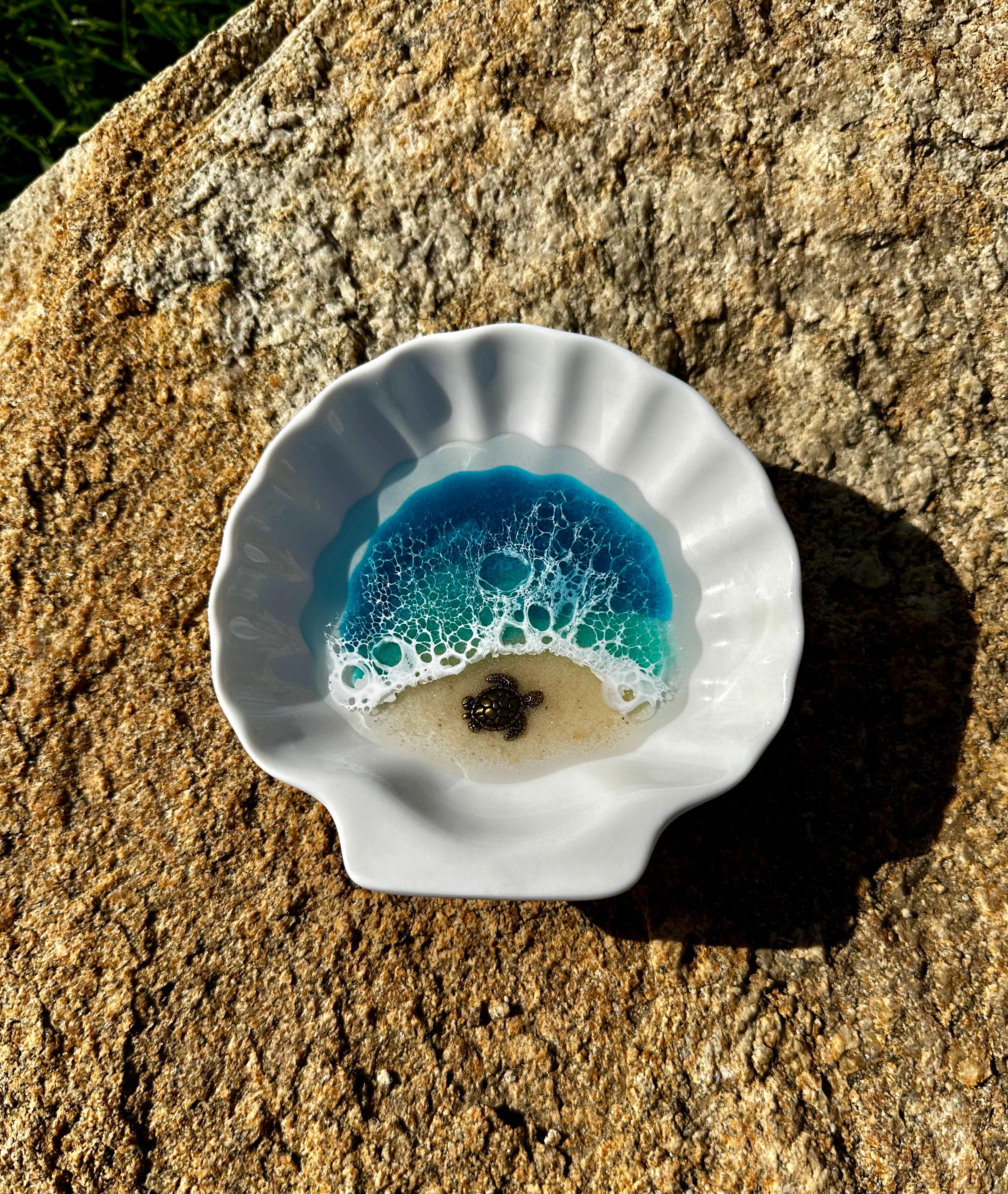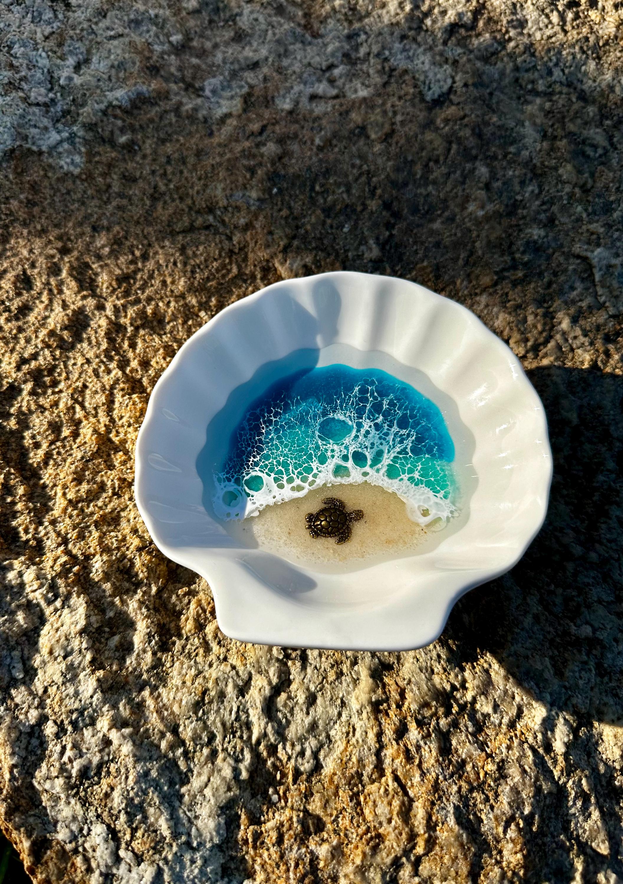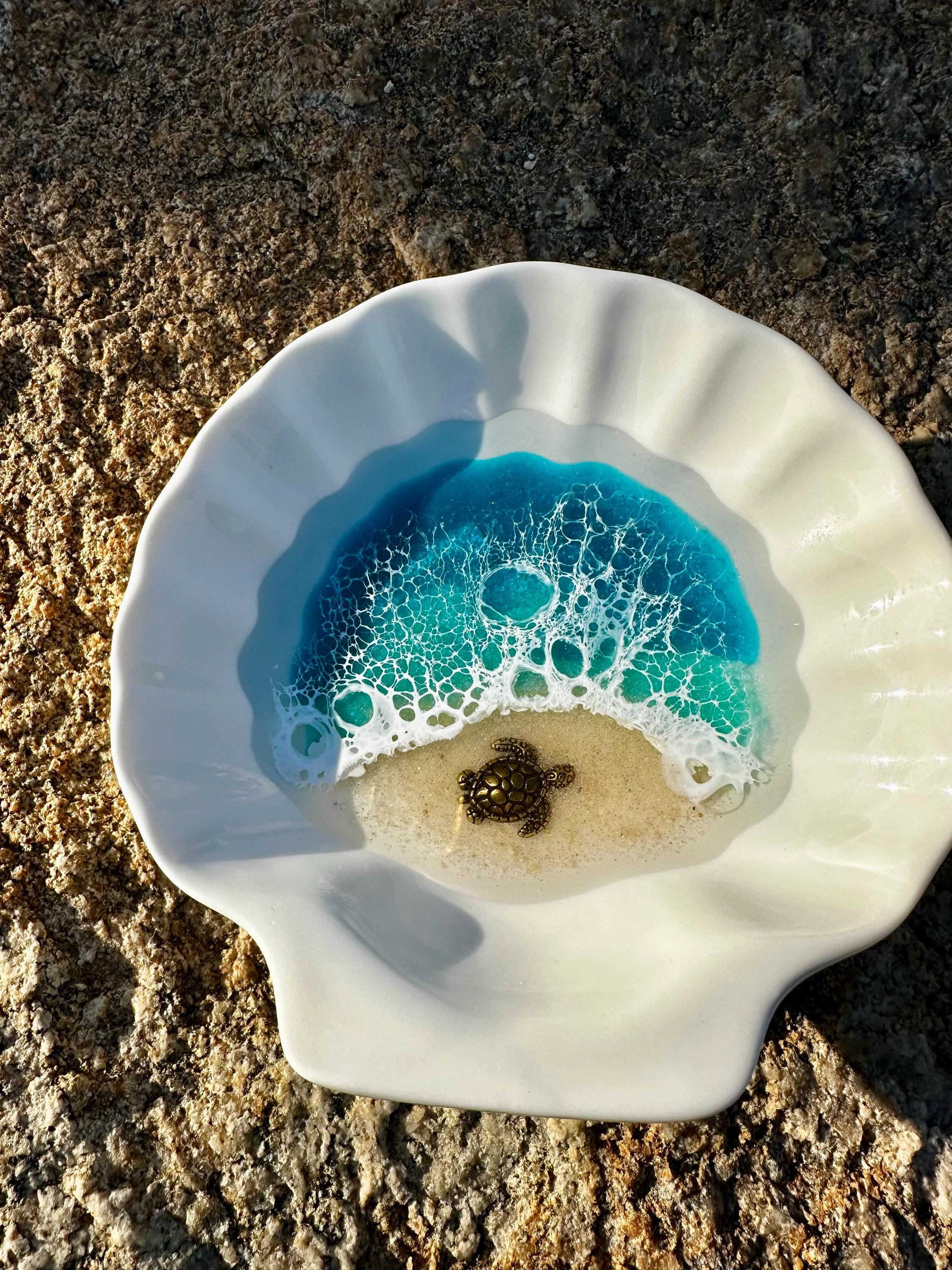 This is the cutest shell ceramic bowl. Take home a piece of the ocean with you. This piece is great to leave out to hold your rings, change, keys etc. It adds a special touch to your decor.