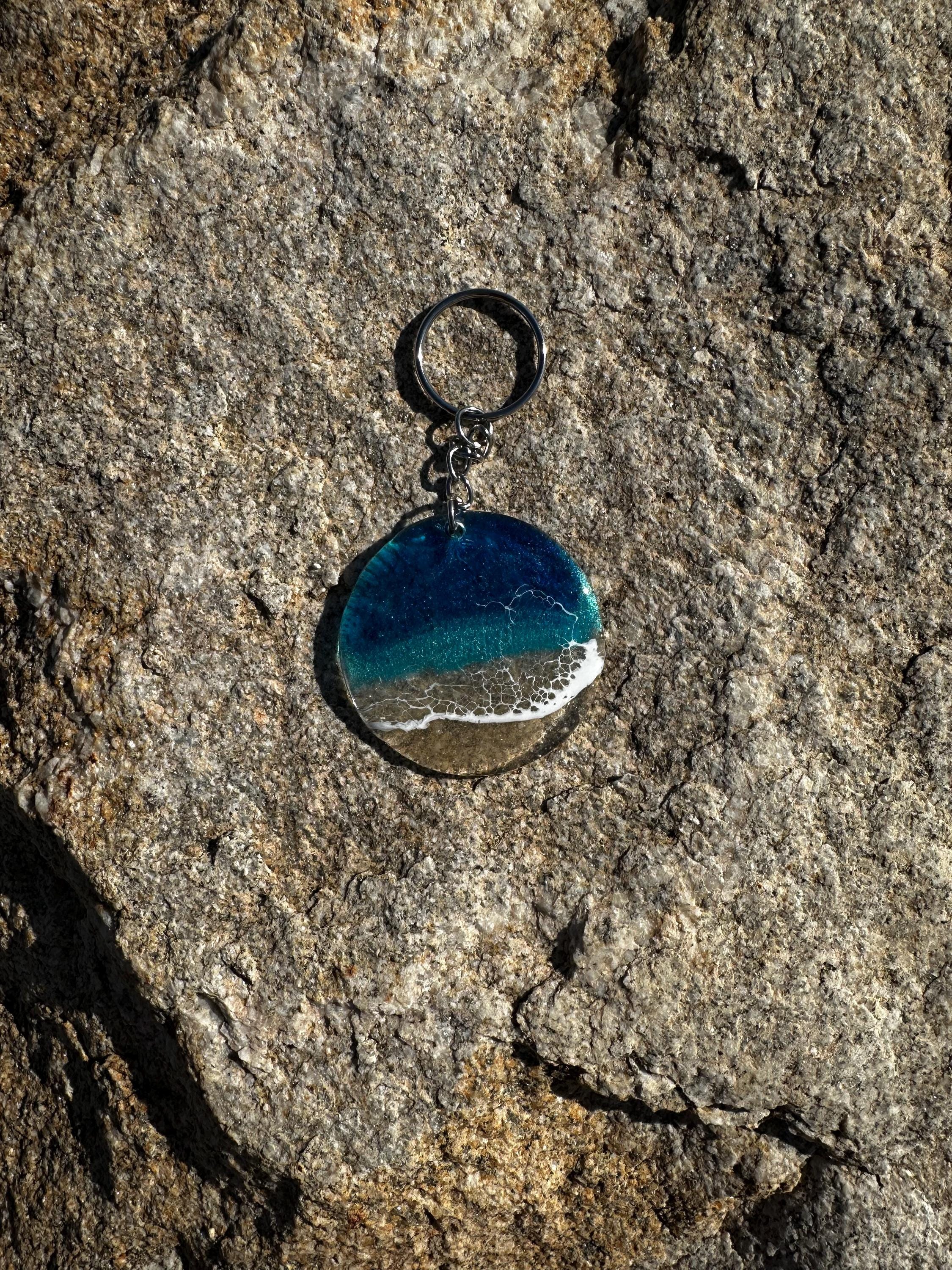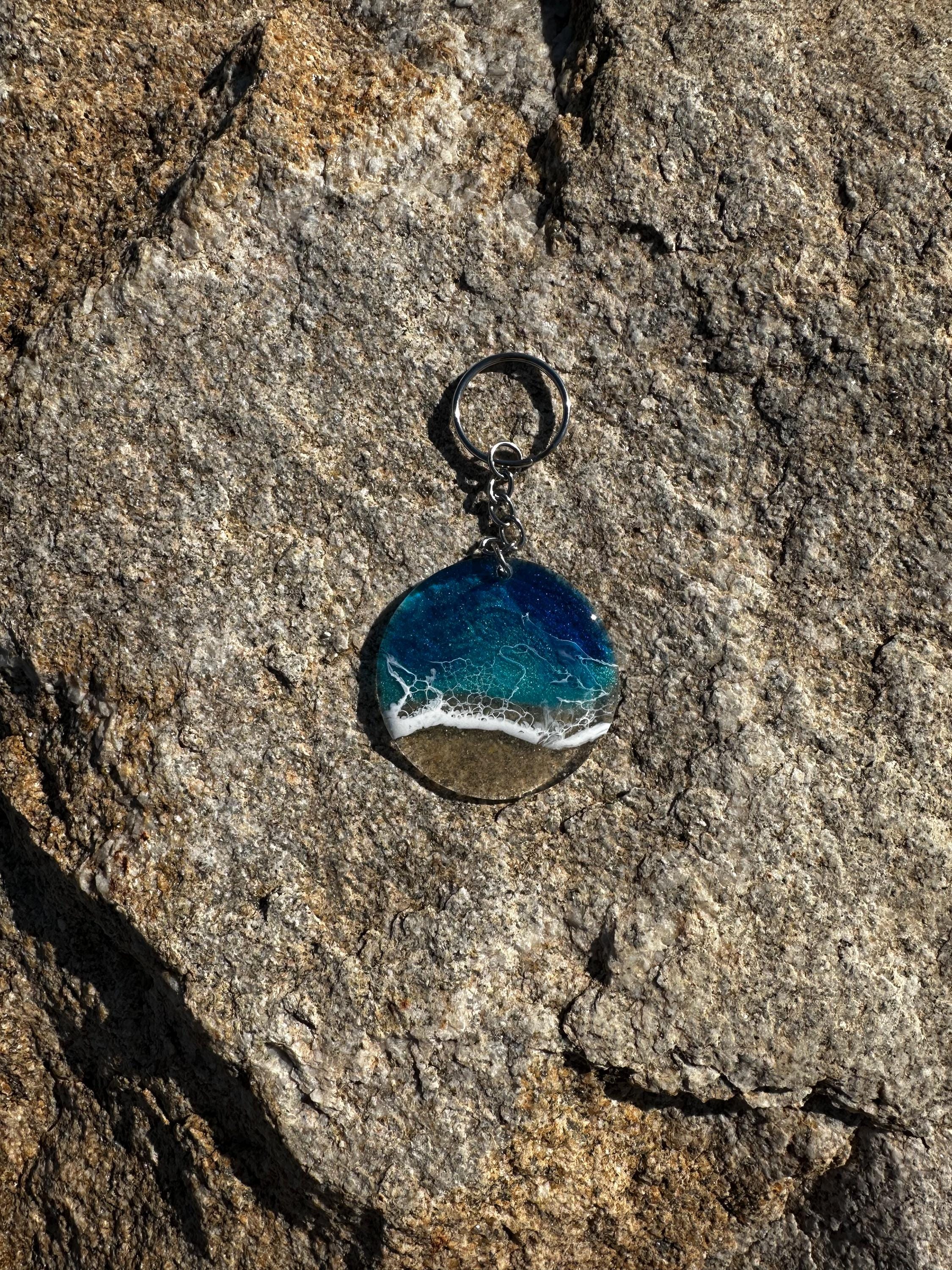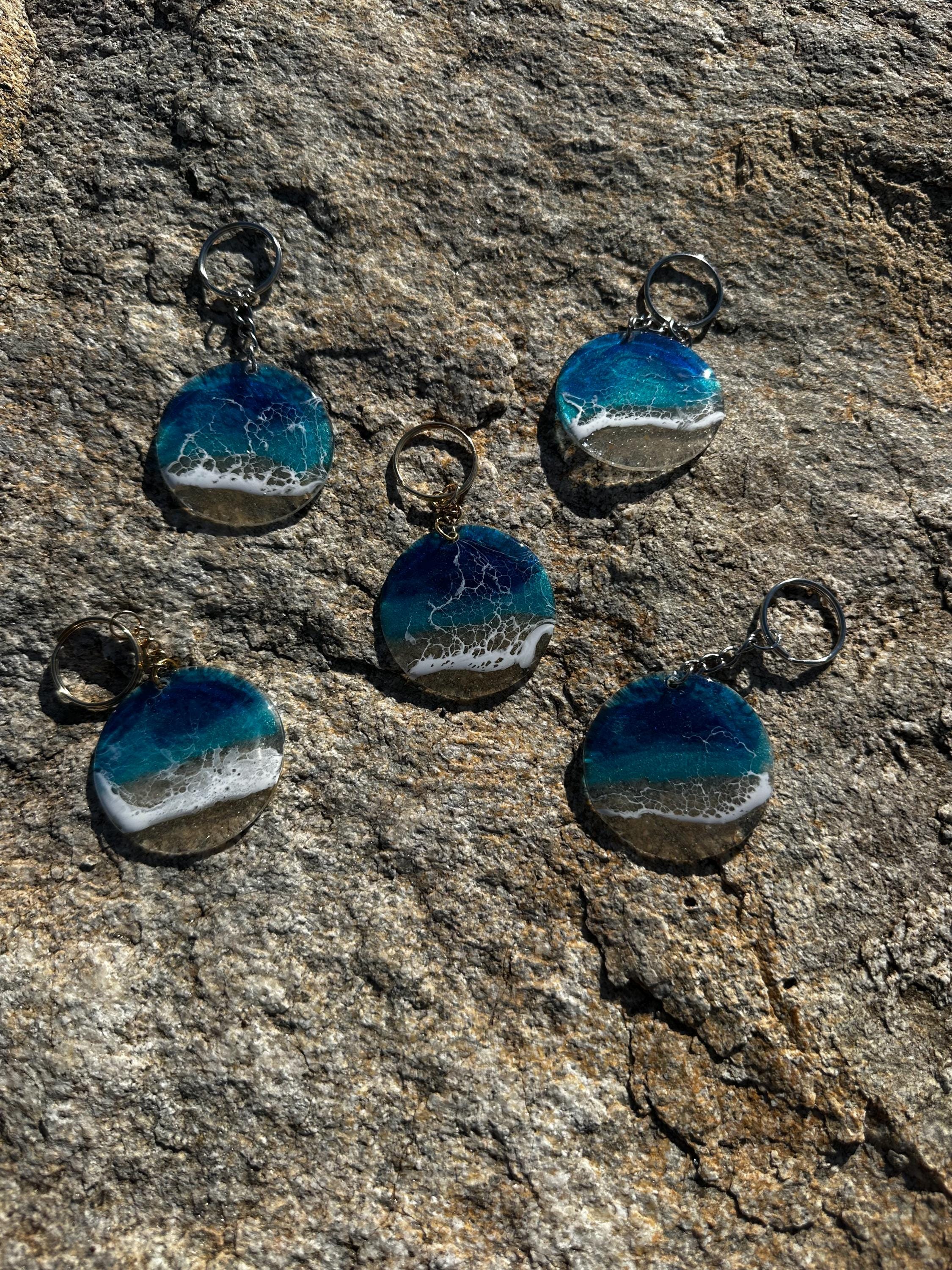 These little ocean keychains are resin poured on acrylic circles. Each keychain is 2in circle with the attached keychain so you can add it to your keyring or purse for decoration. Carry a piece of the tranquility of the ocean with you at all times.