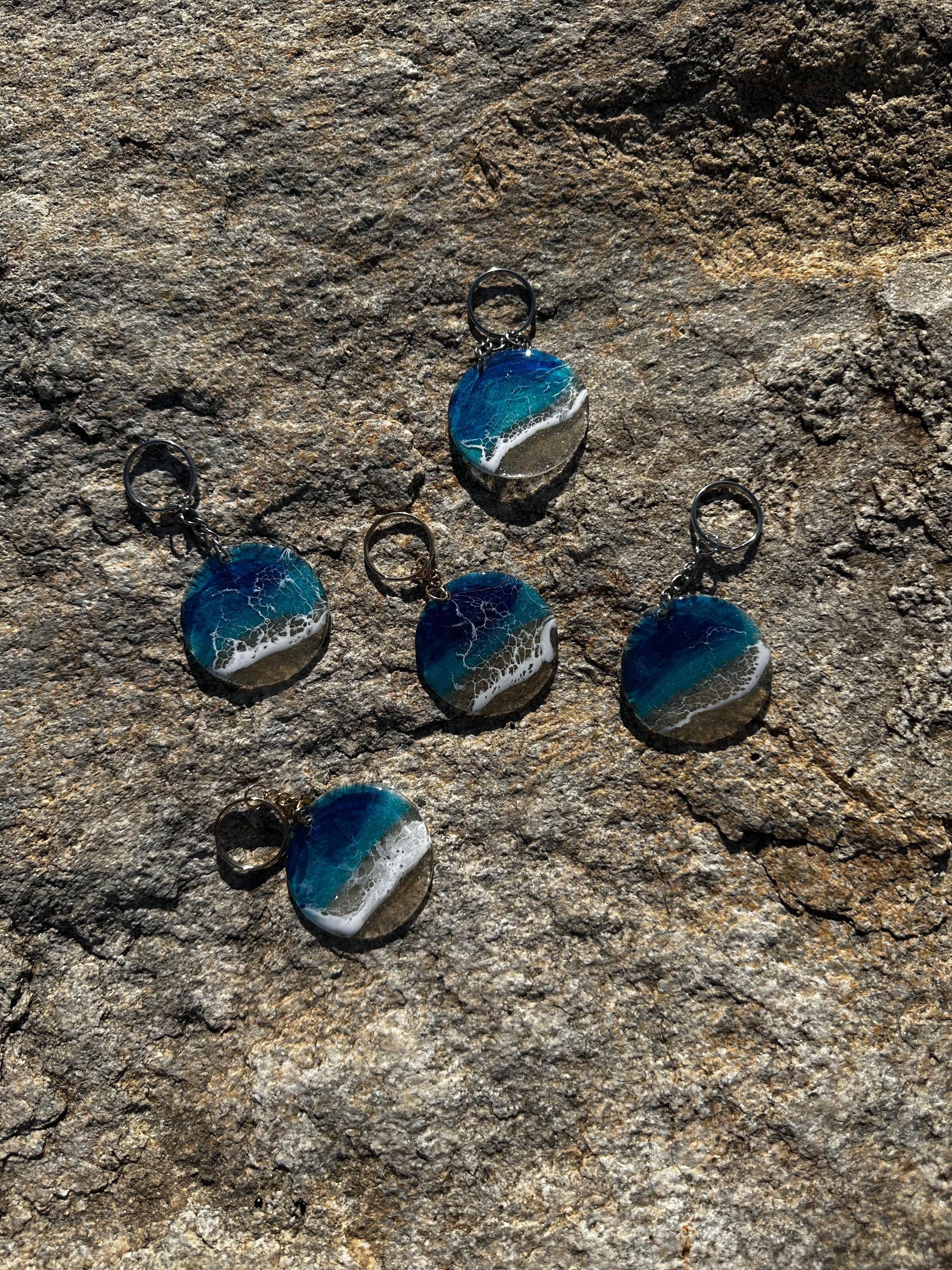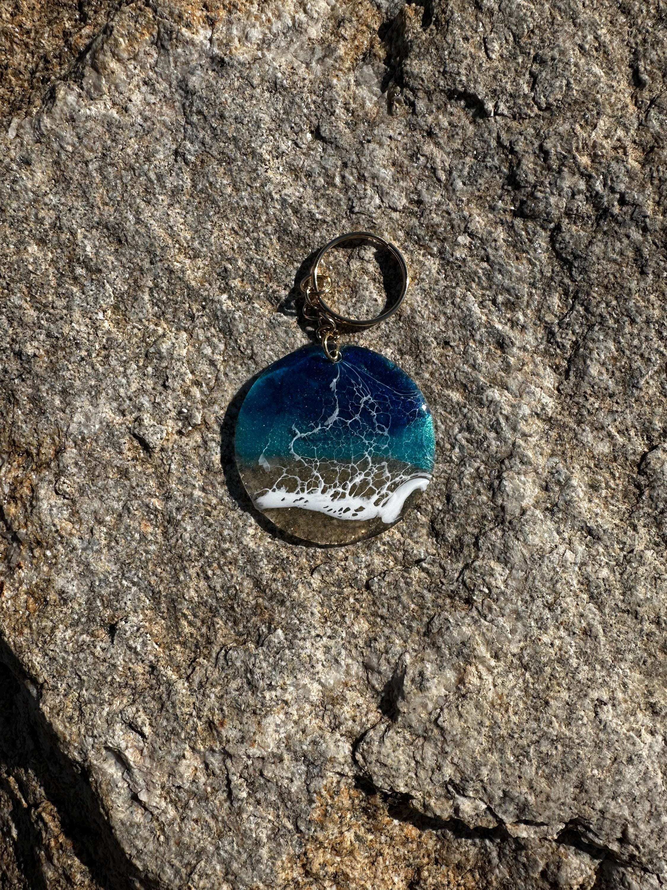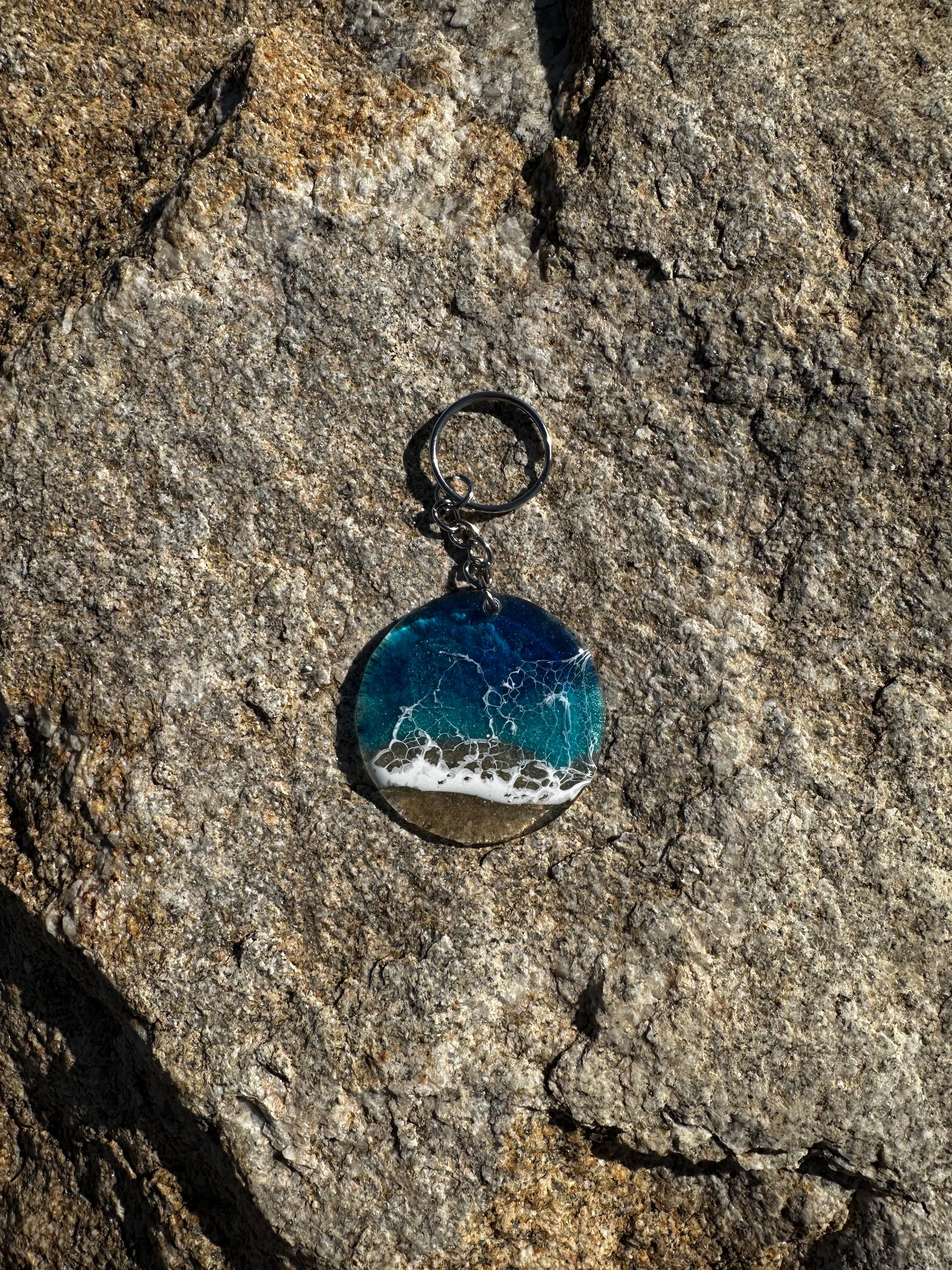 These little ocean keychains are resin poured on acrylic circles. Each keychain is 2in circle with the attached keychain so you can add it to your keyring or purse for decoration. Carry a piece of the tranquility of the ocean with you at all times.