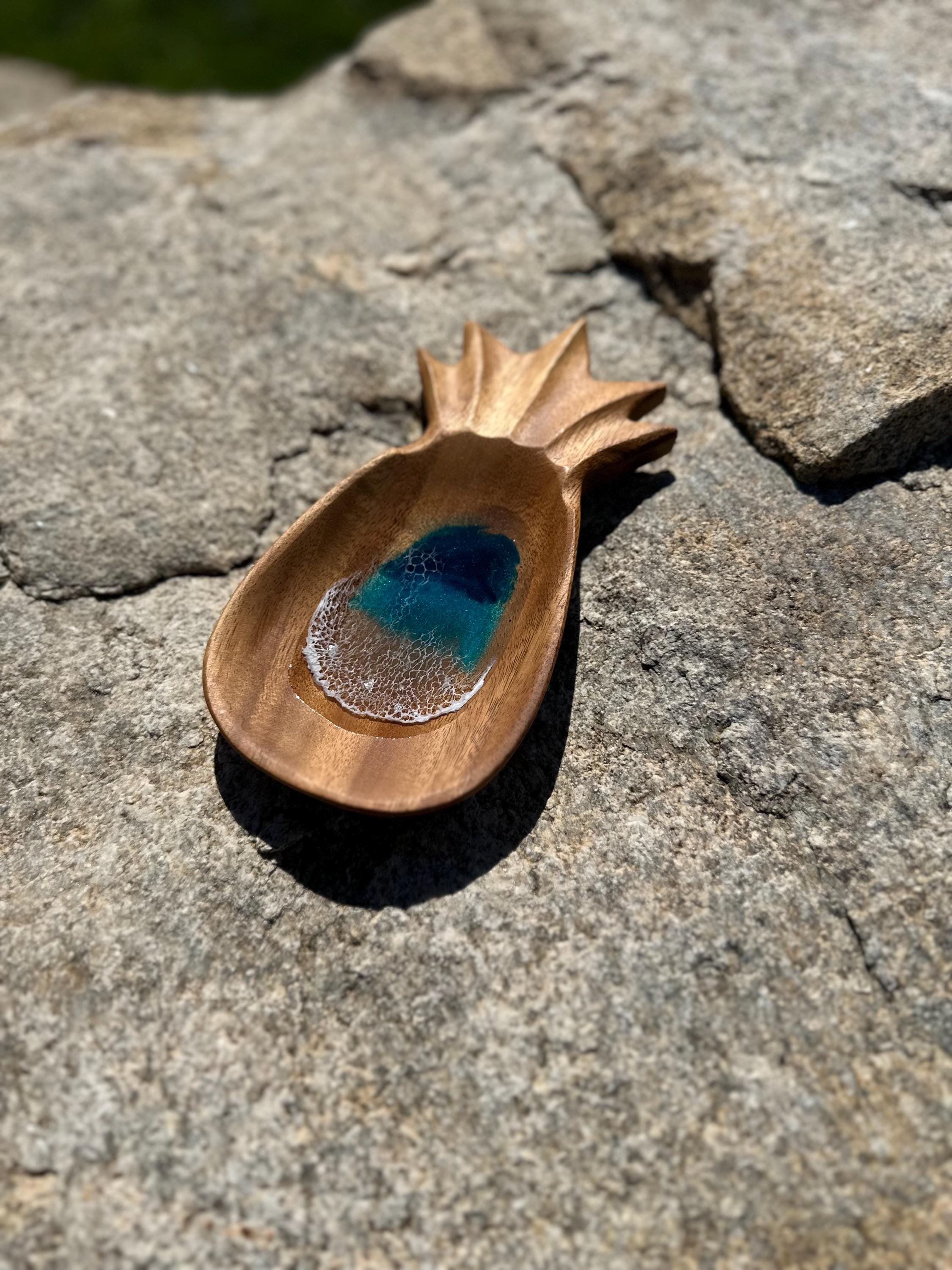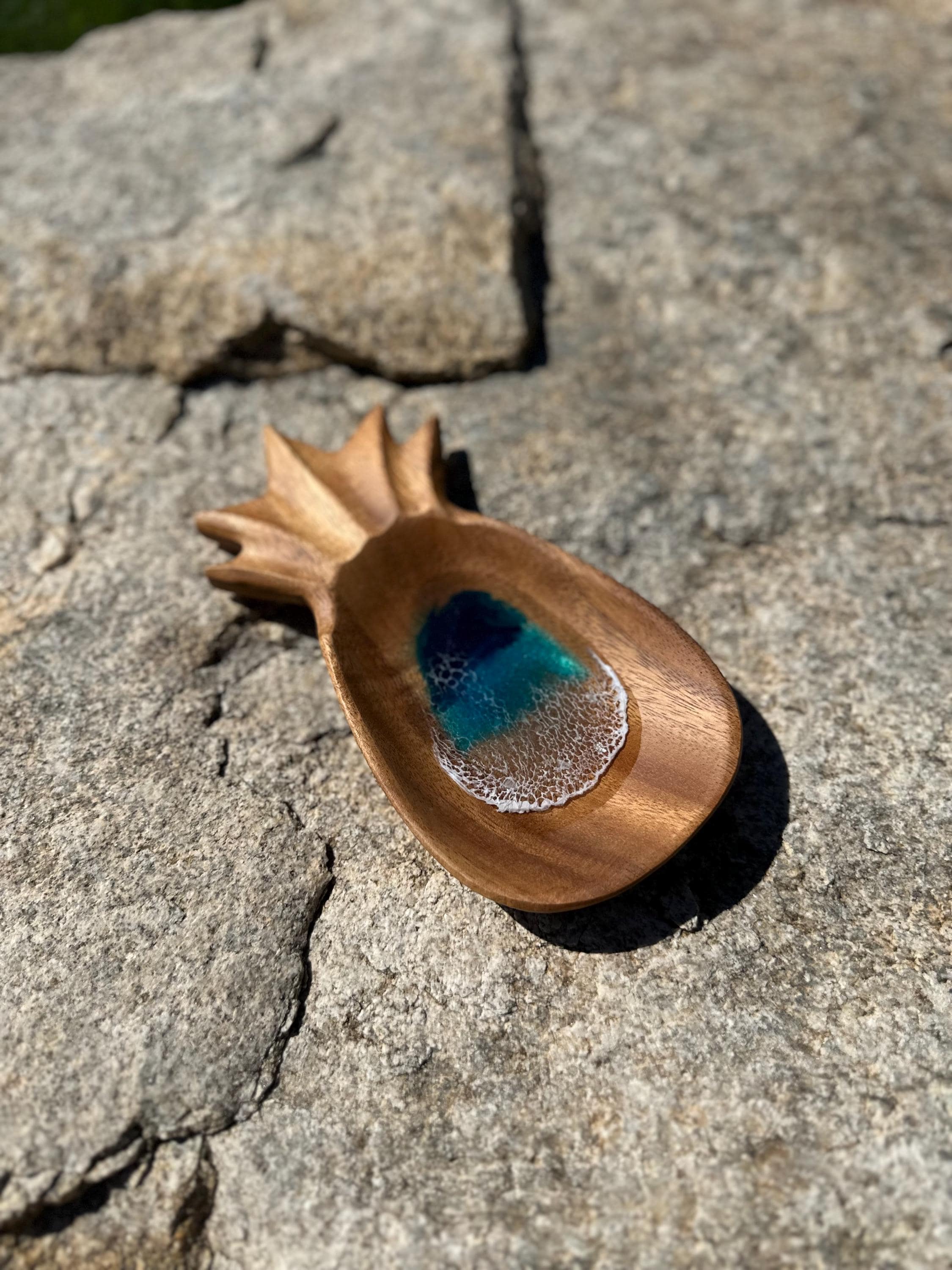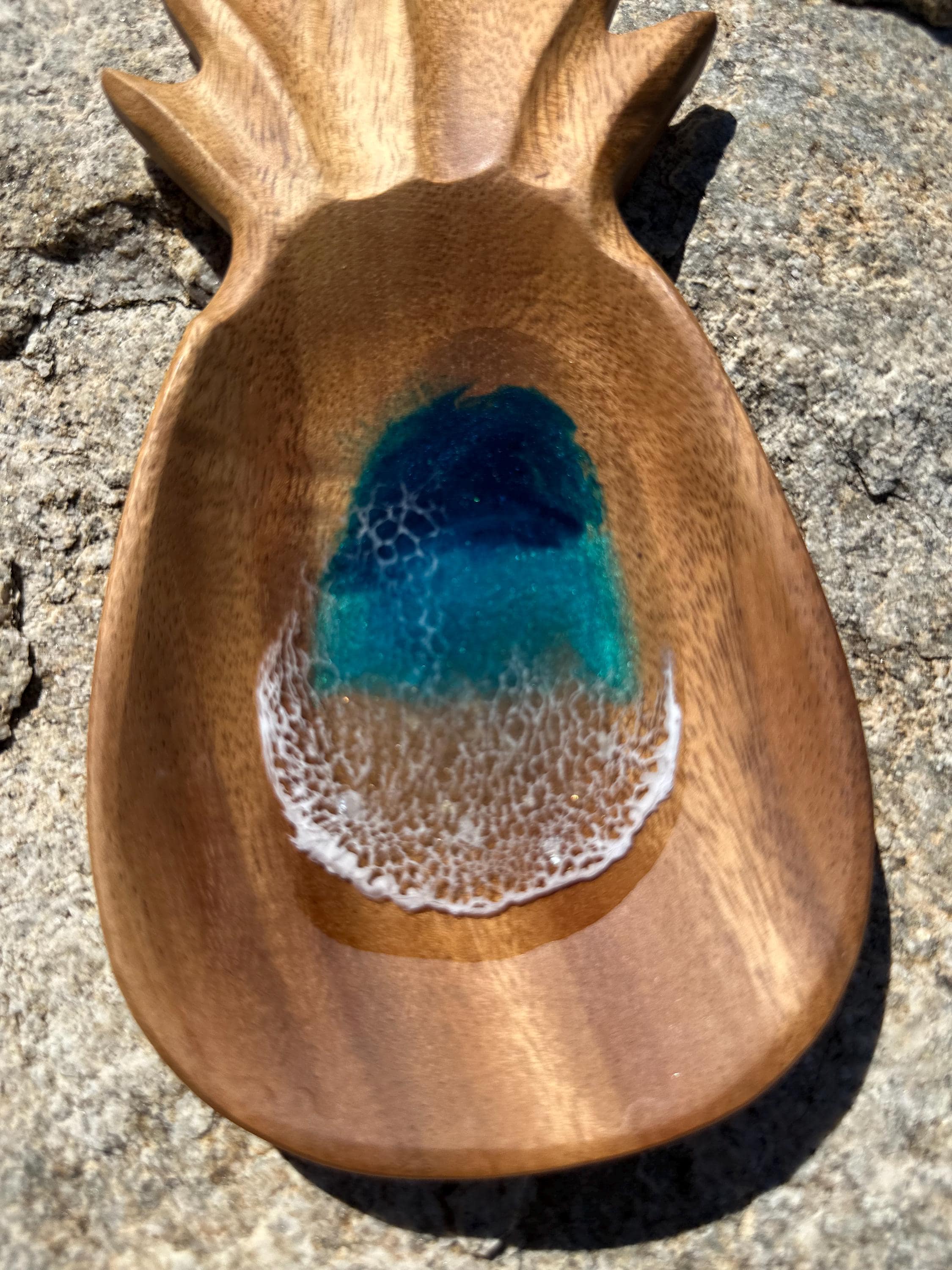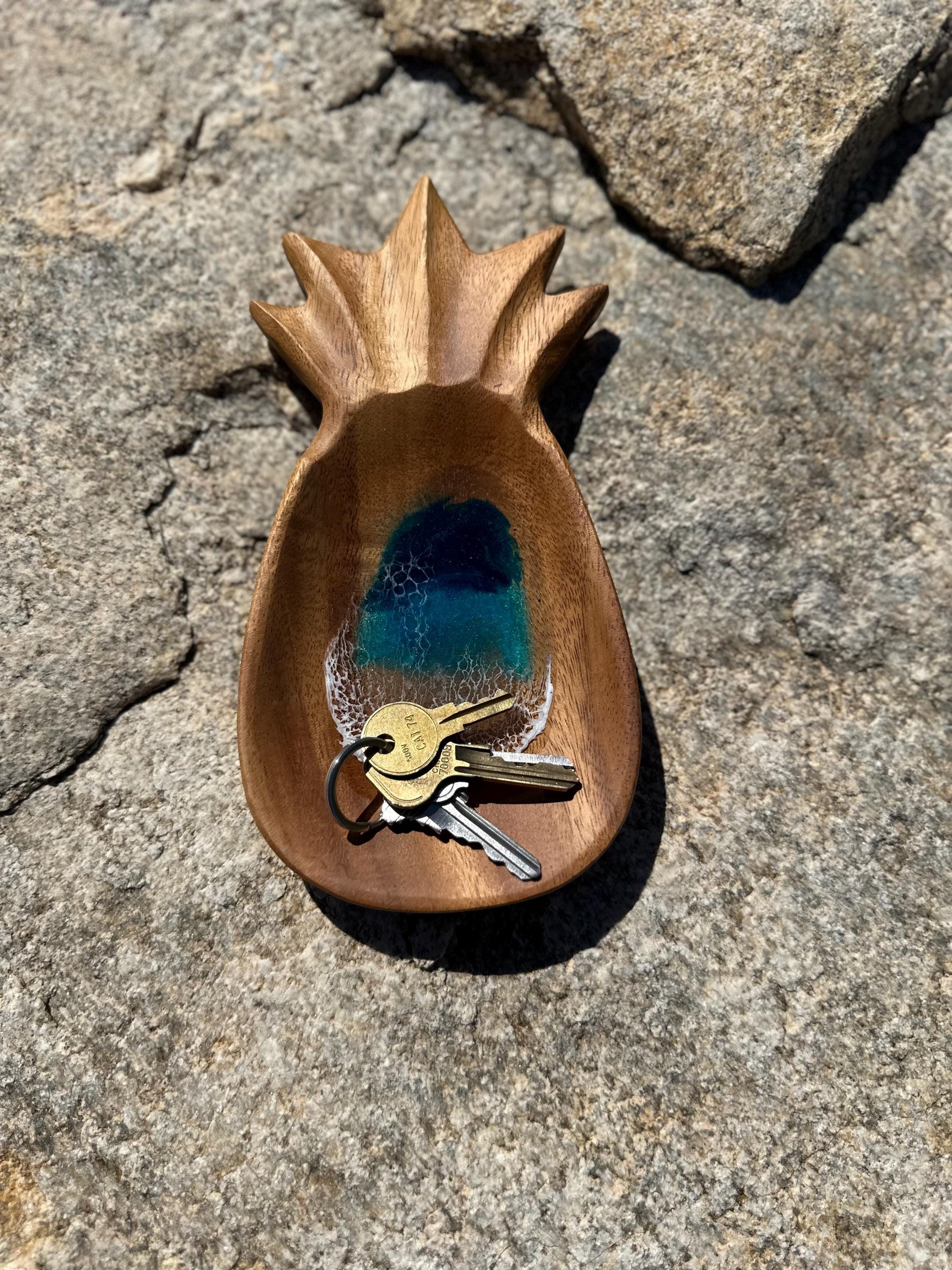 This is the cutest pineapple wood bowl. Take home a piece of the ocean with you. This piece is great to leave out to hold your rings, change, keys etc. It adds a special touch to your decor.