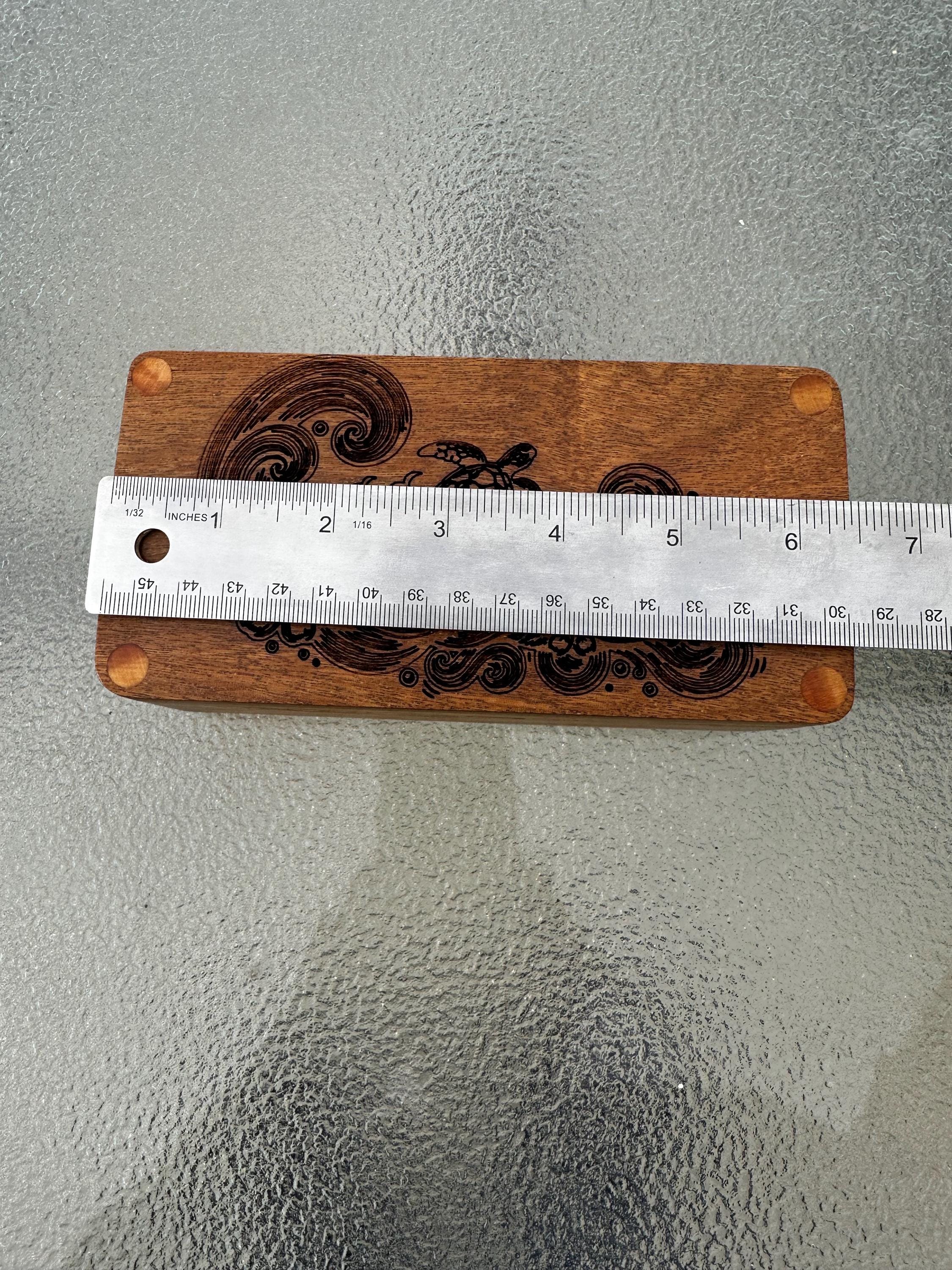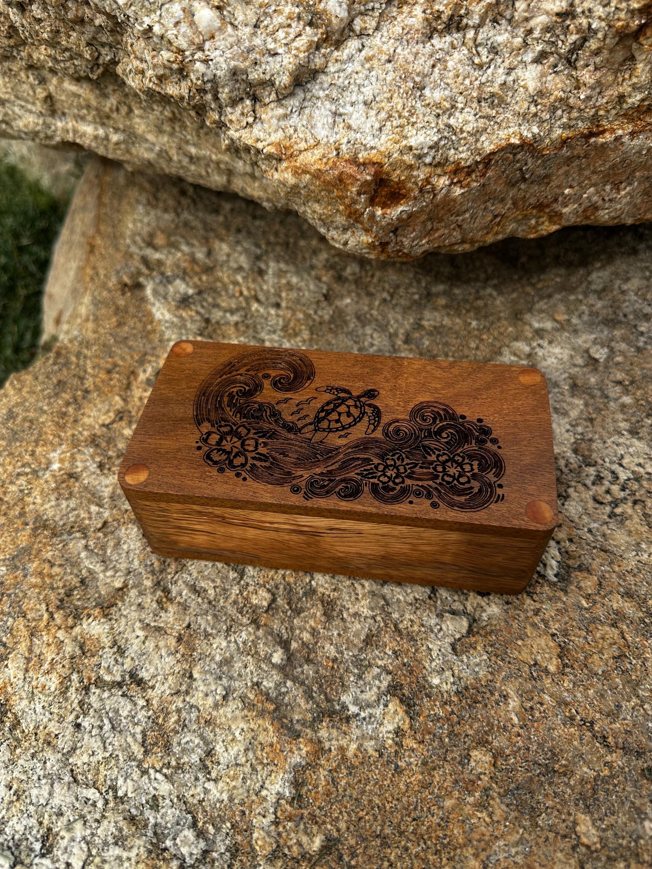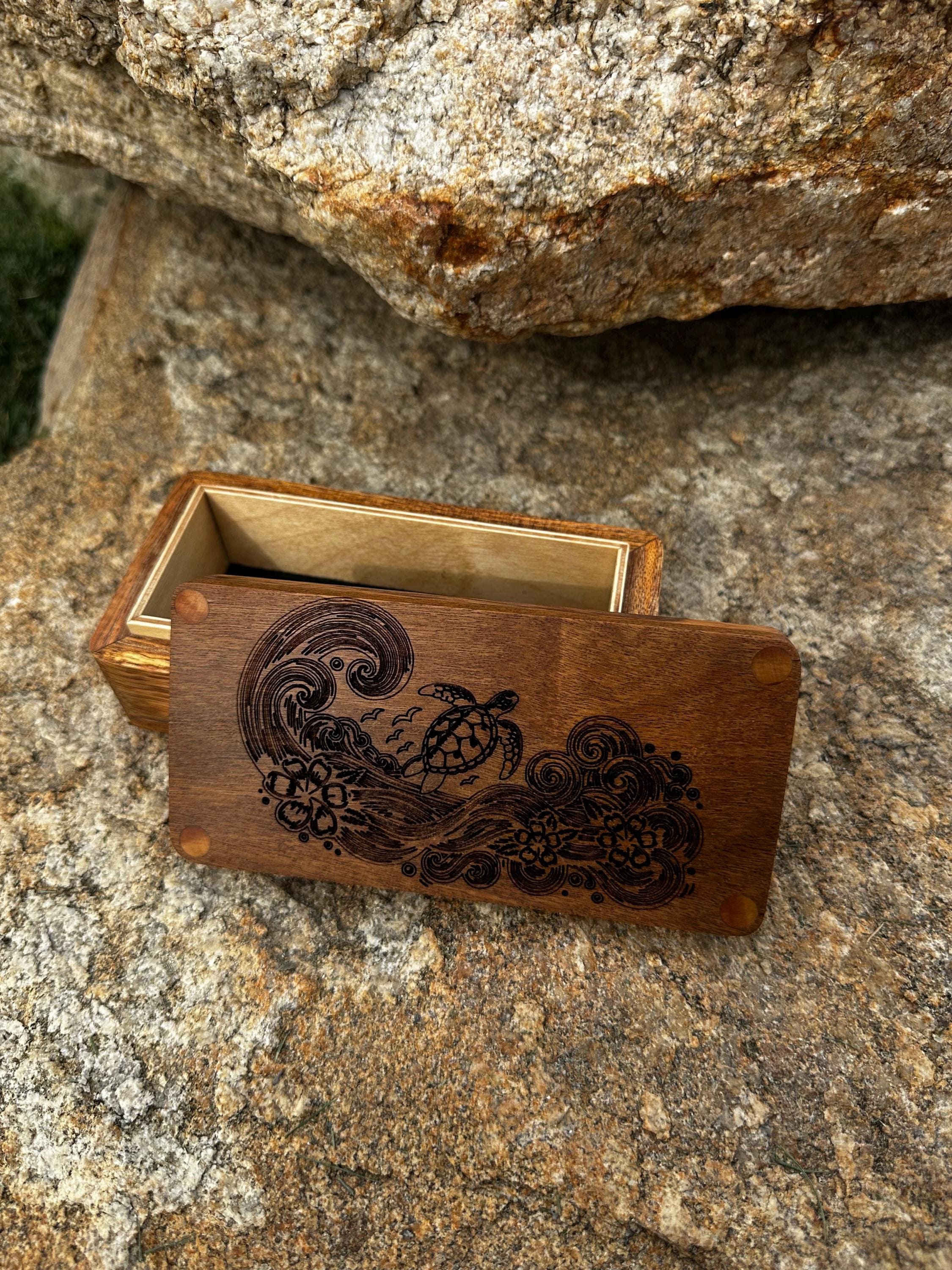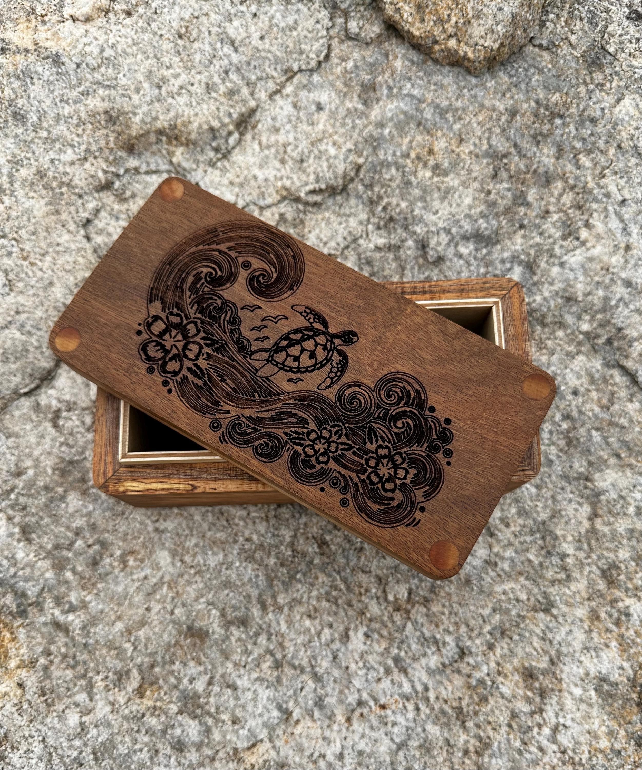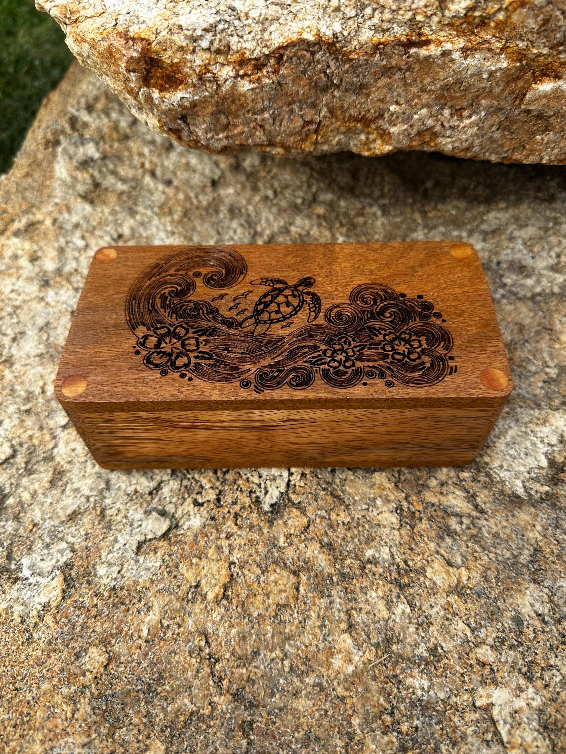 Handmade wood engraved sea turtle box.