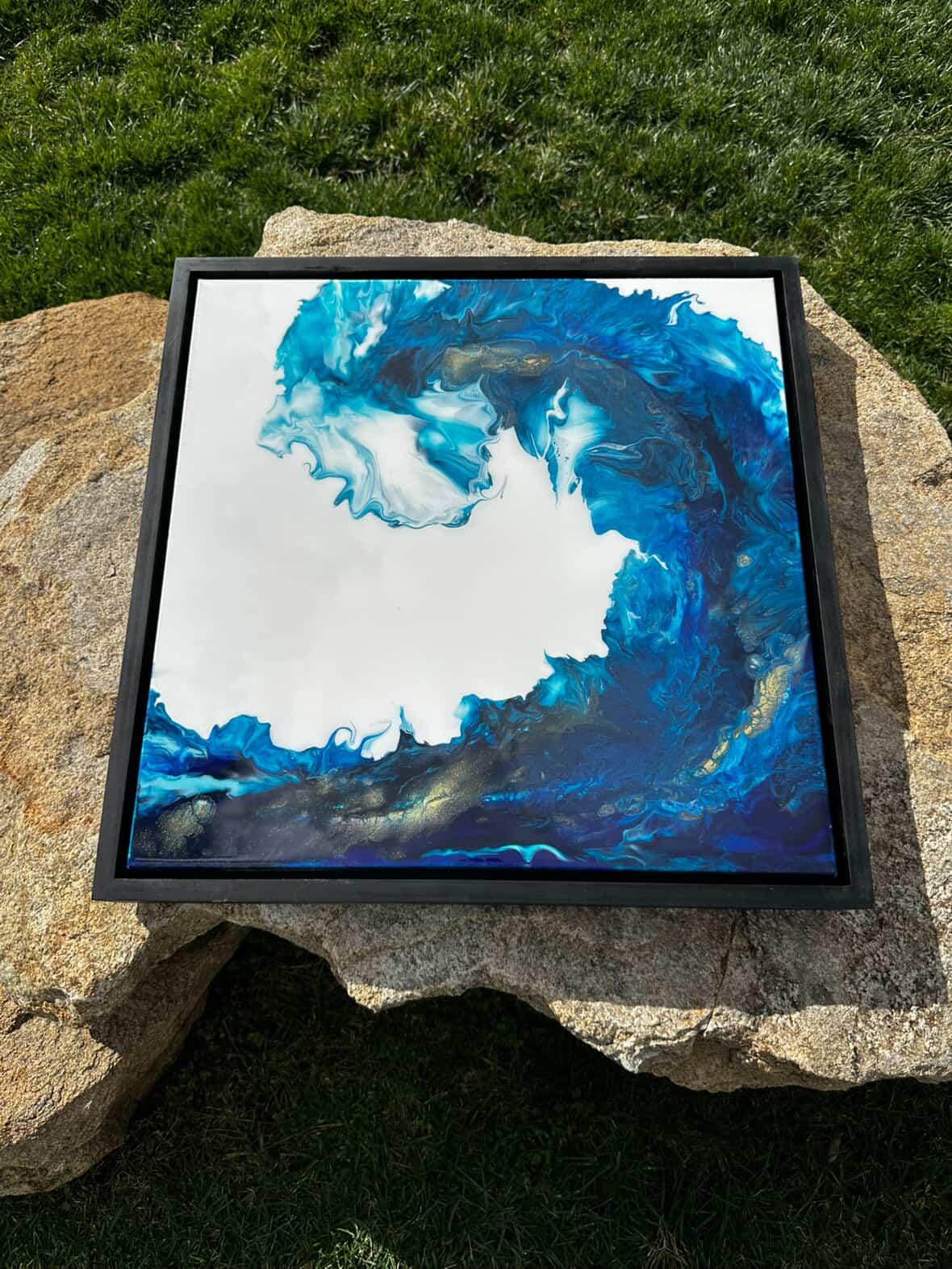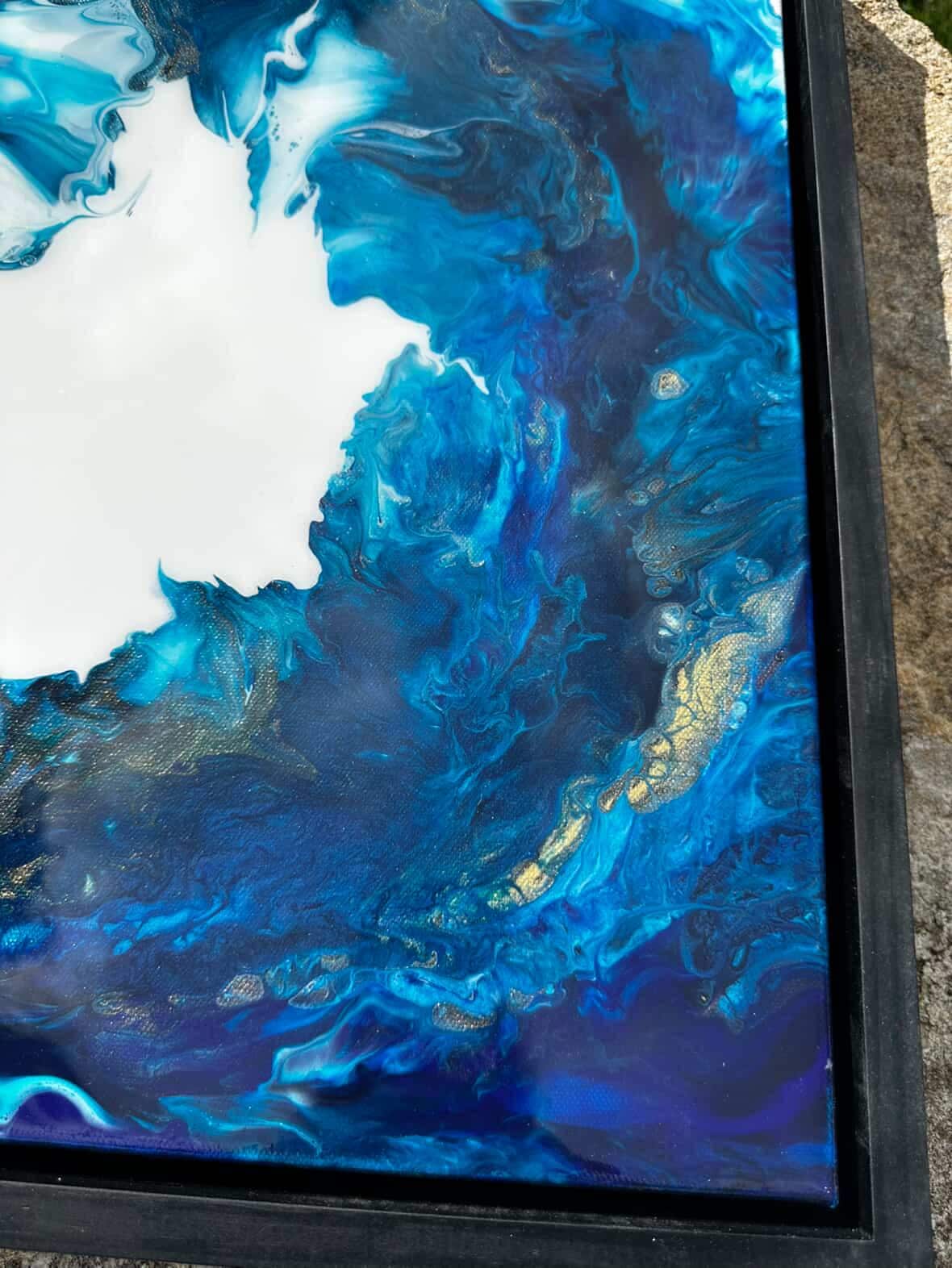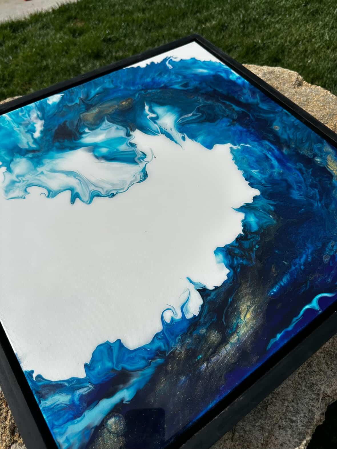Original artwork- stunning abstract painting of an ocean wave on gallery wrapped level 3 canvas done in a Dutch pour style utilizing acrylic paints and topped with a coat of resin to really shine.