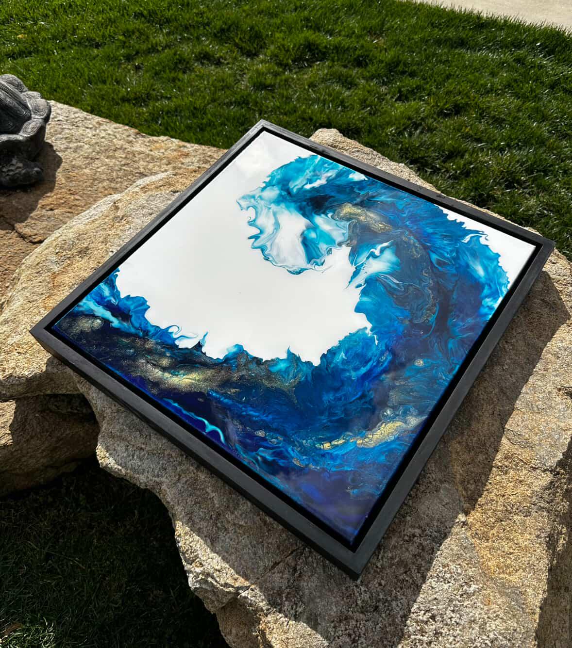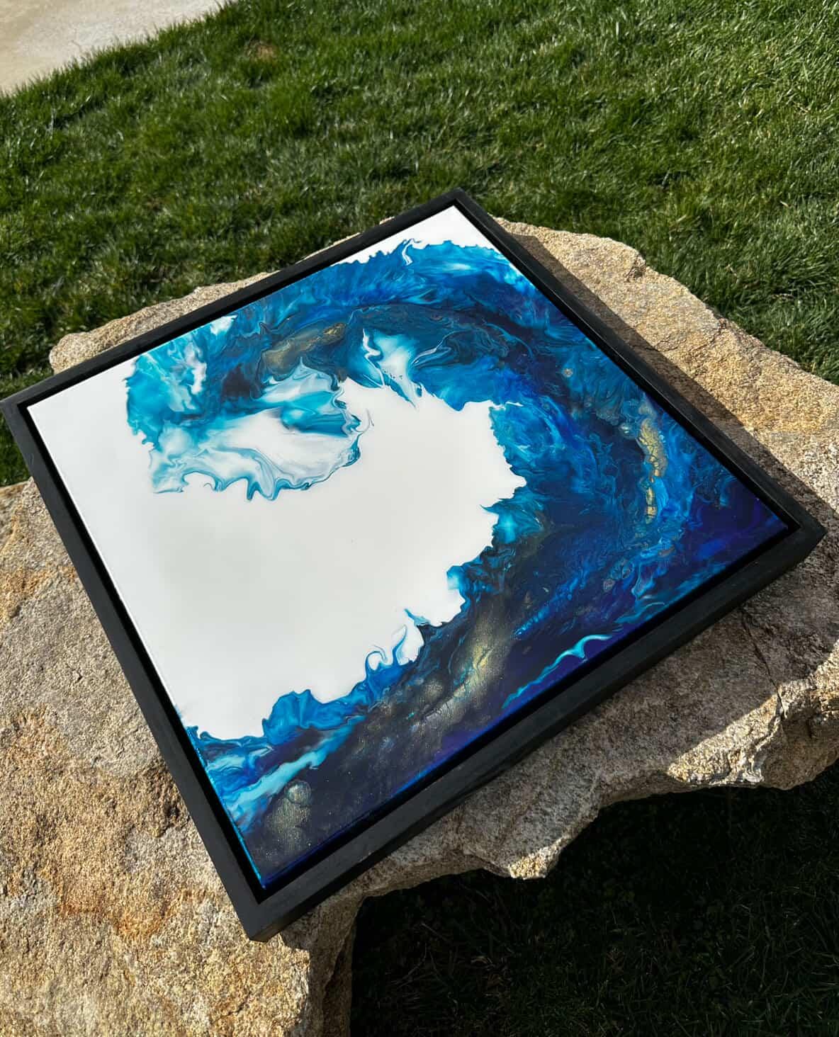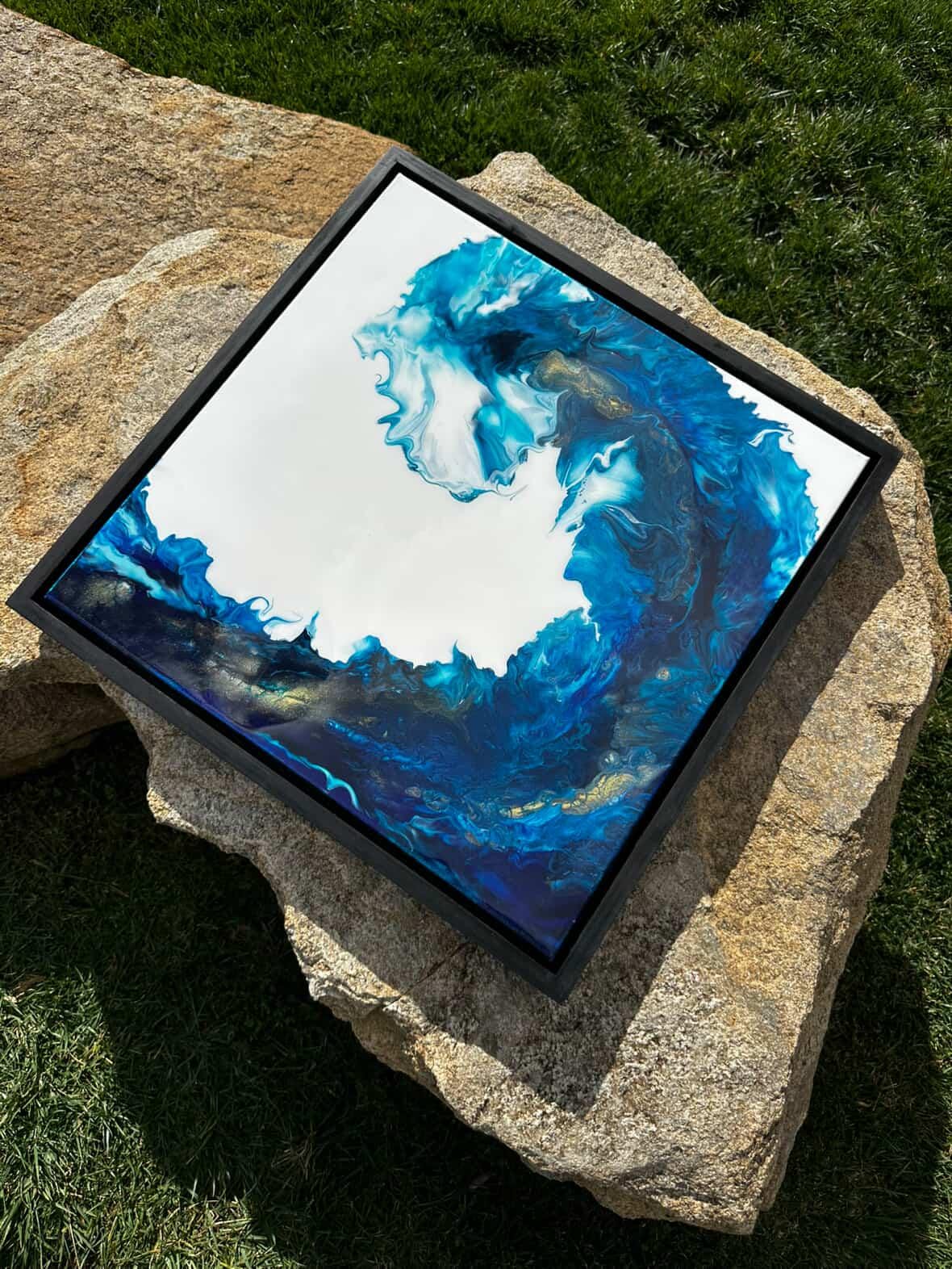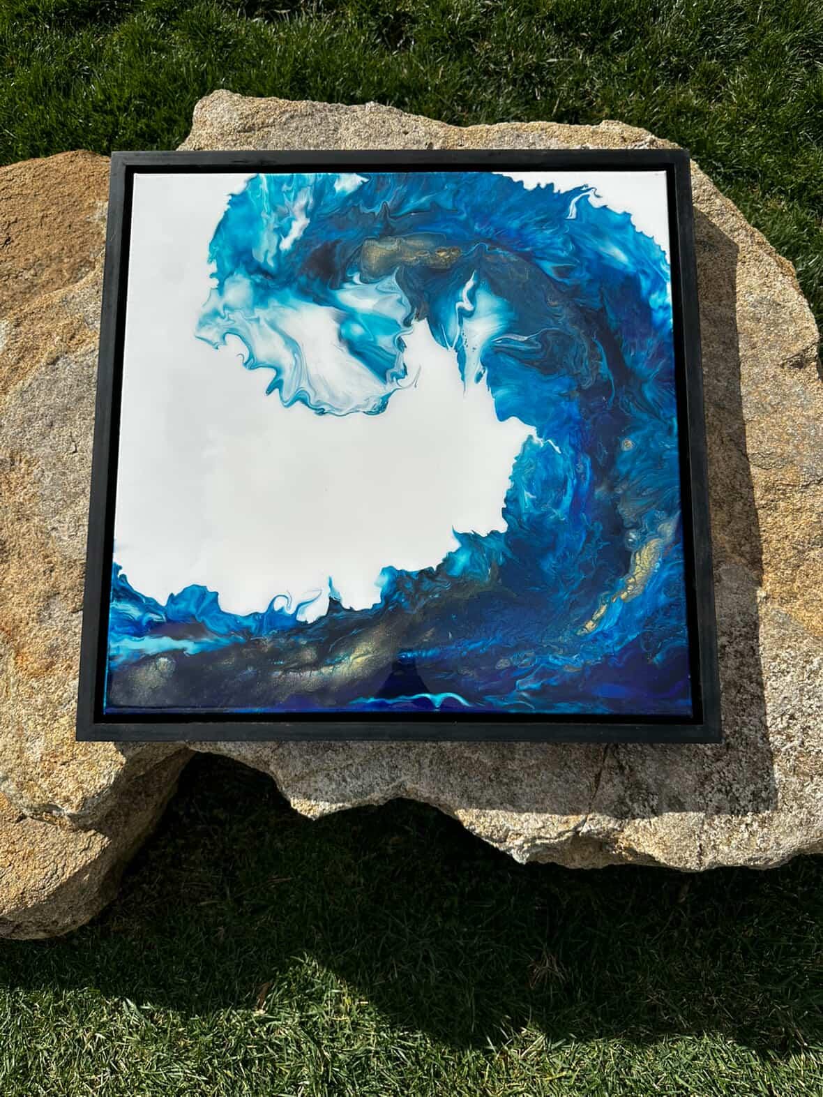 Original artwork- stunning abstract painting of an ocean wave on gallery wrapped level 3 canvas done in a Dutch pour style utilizing acrylic paints and topped with a coat of resin to really shine.