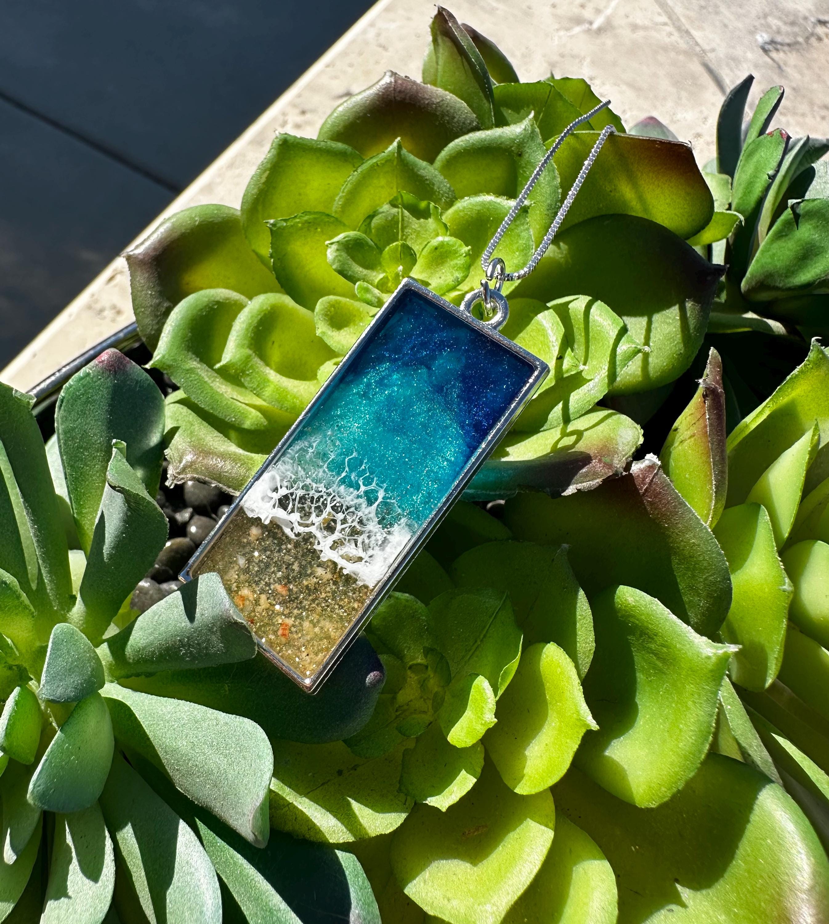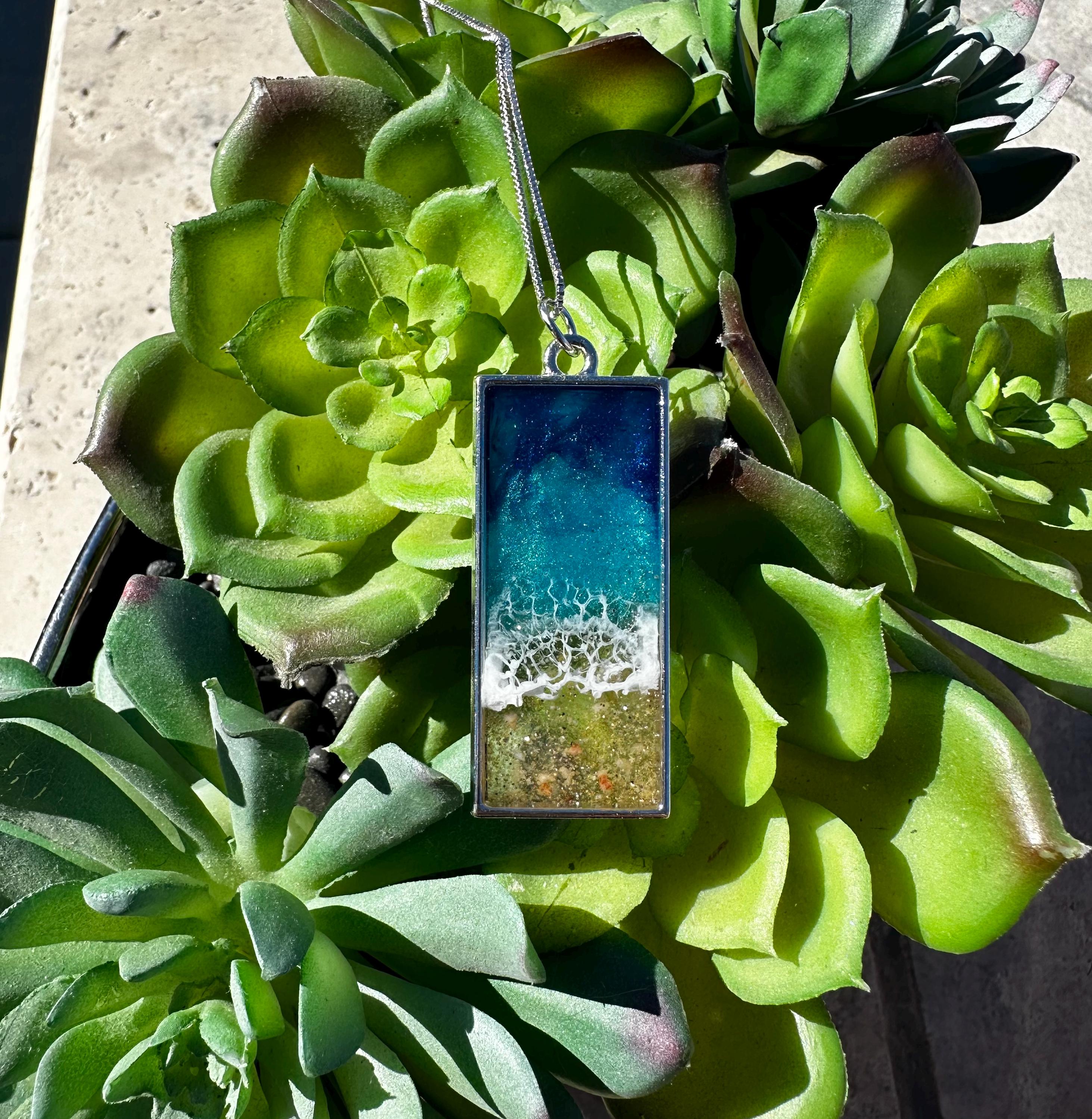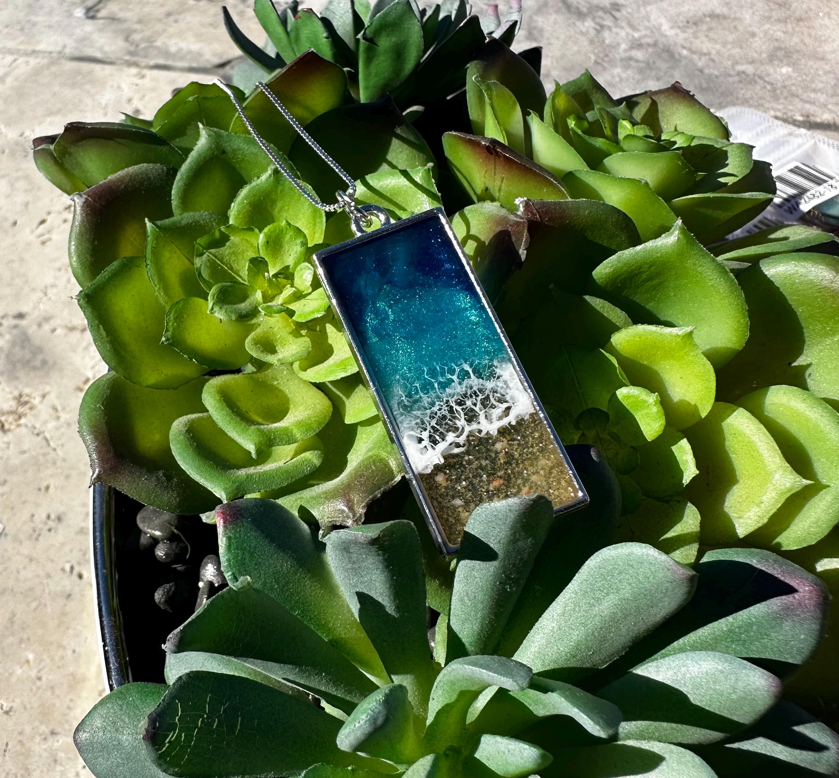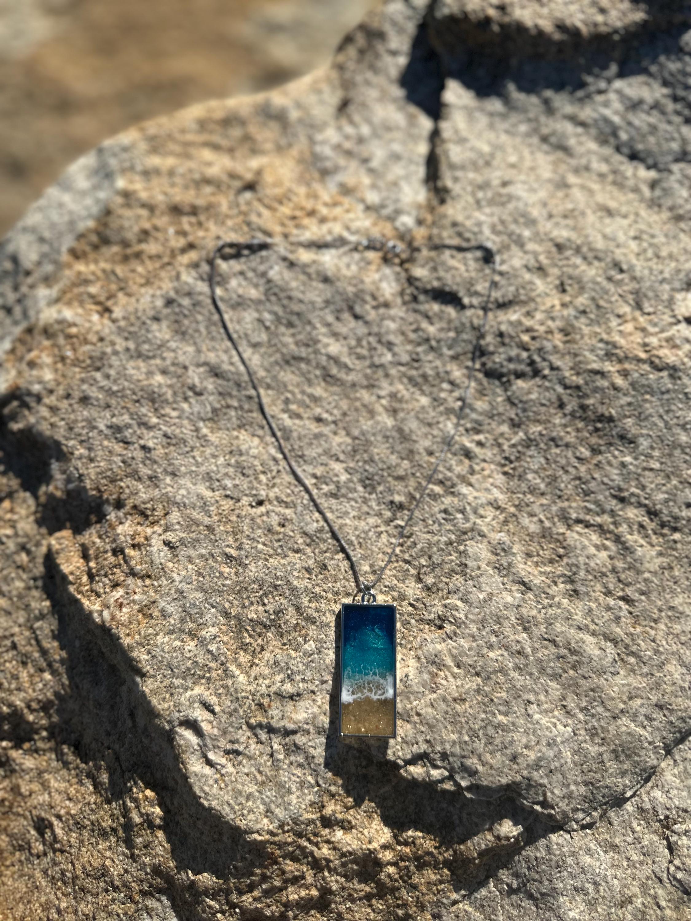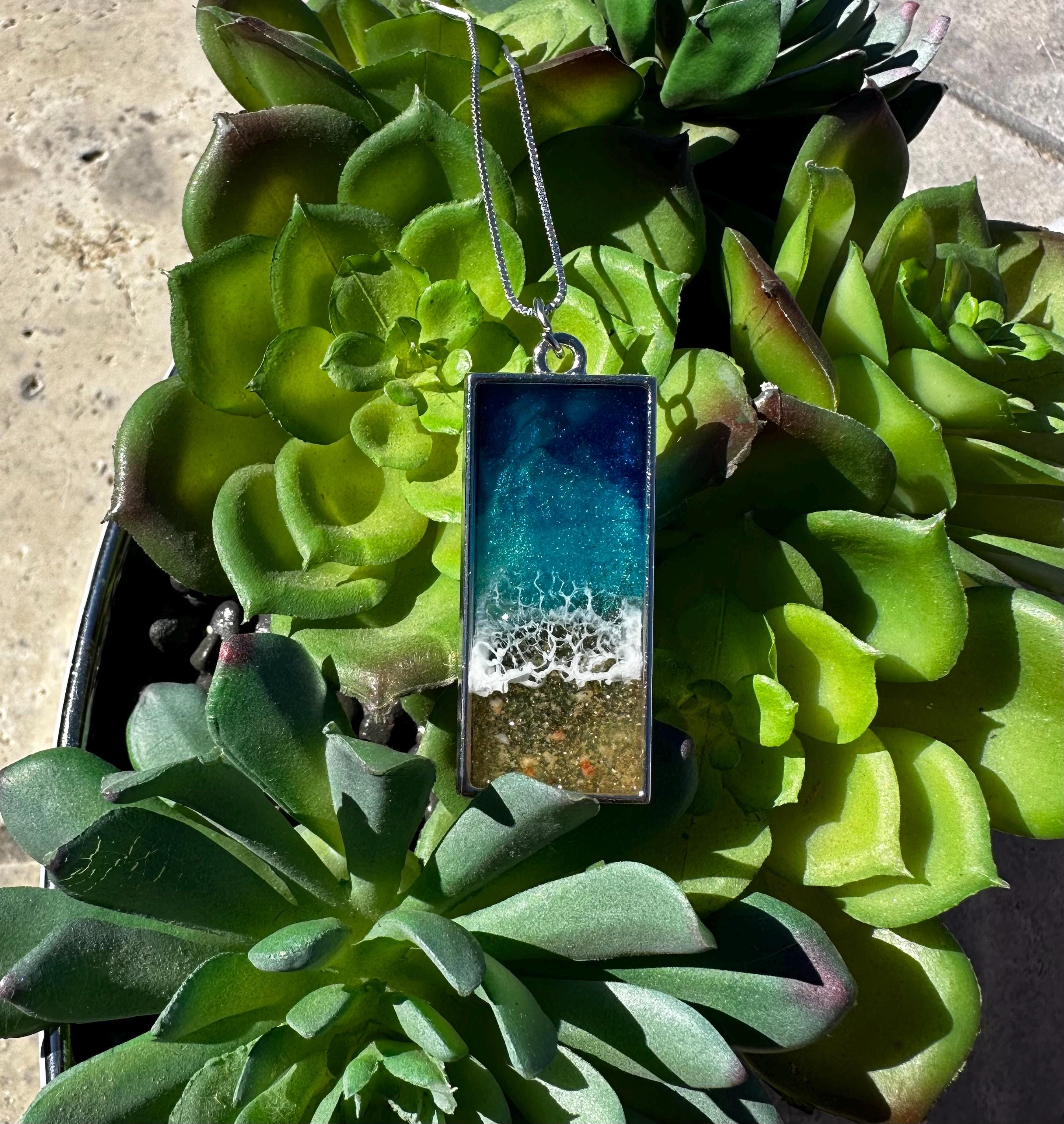 Beautiful ocean resin art presented in jewelry form.