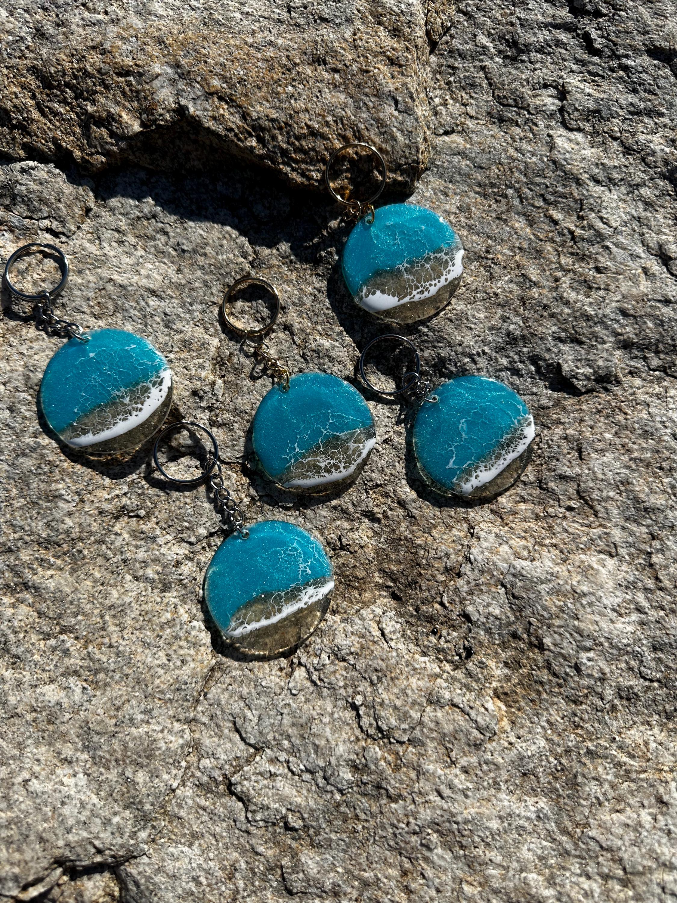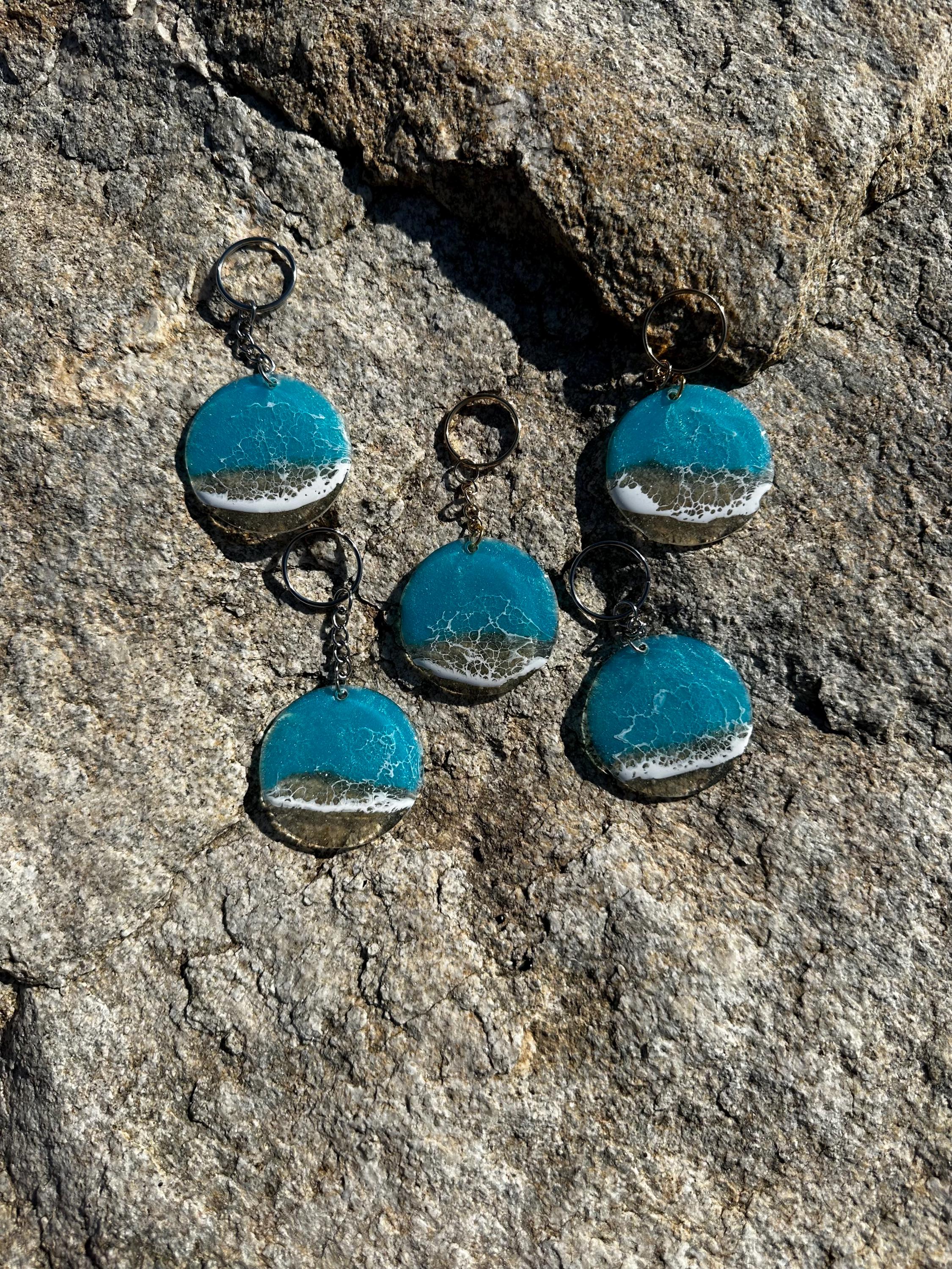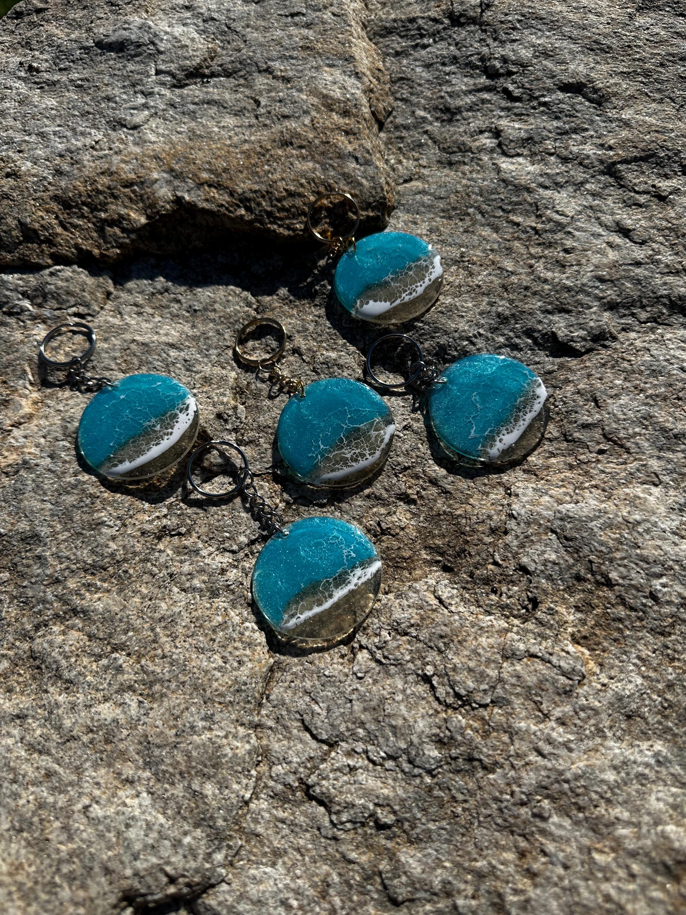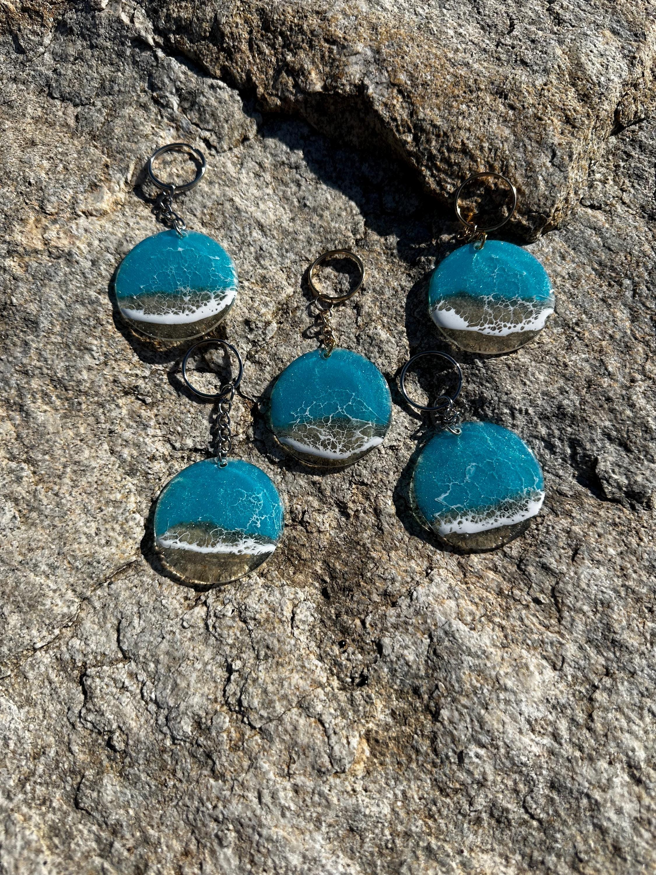 These little ocean keychains are resin poured on acrylic circles. Each keychain is a 2 in circle with the attached keychain so you can add it to your keyring or purse for decoration. Carry a piece of the tranquility of the ocean with you at all times.