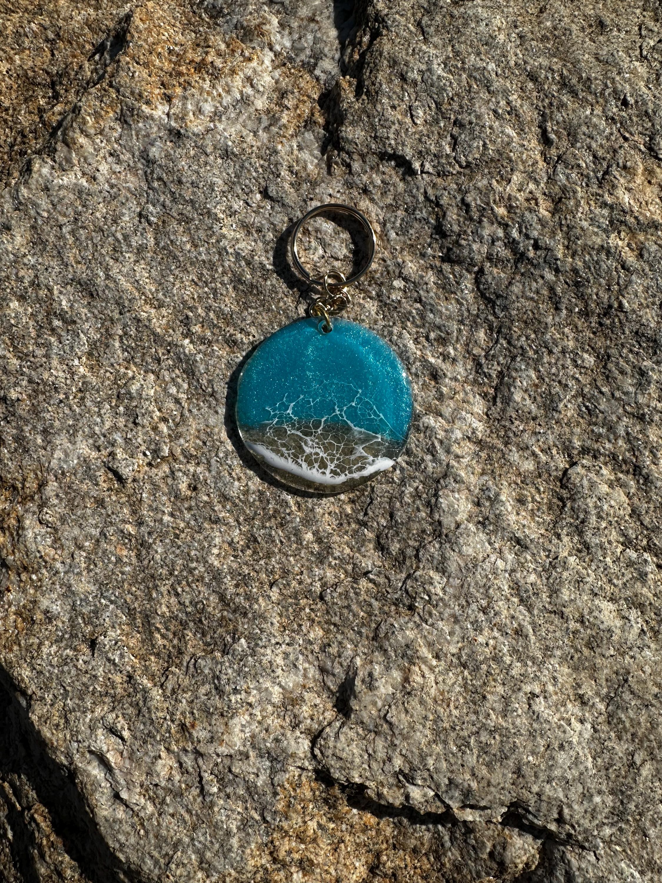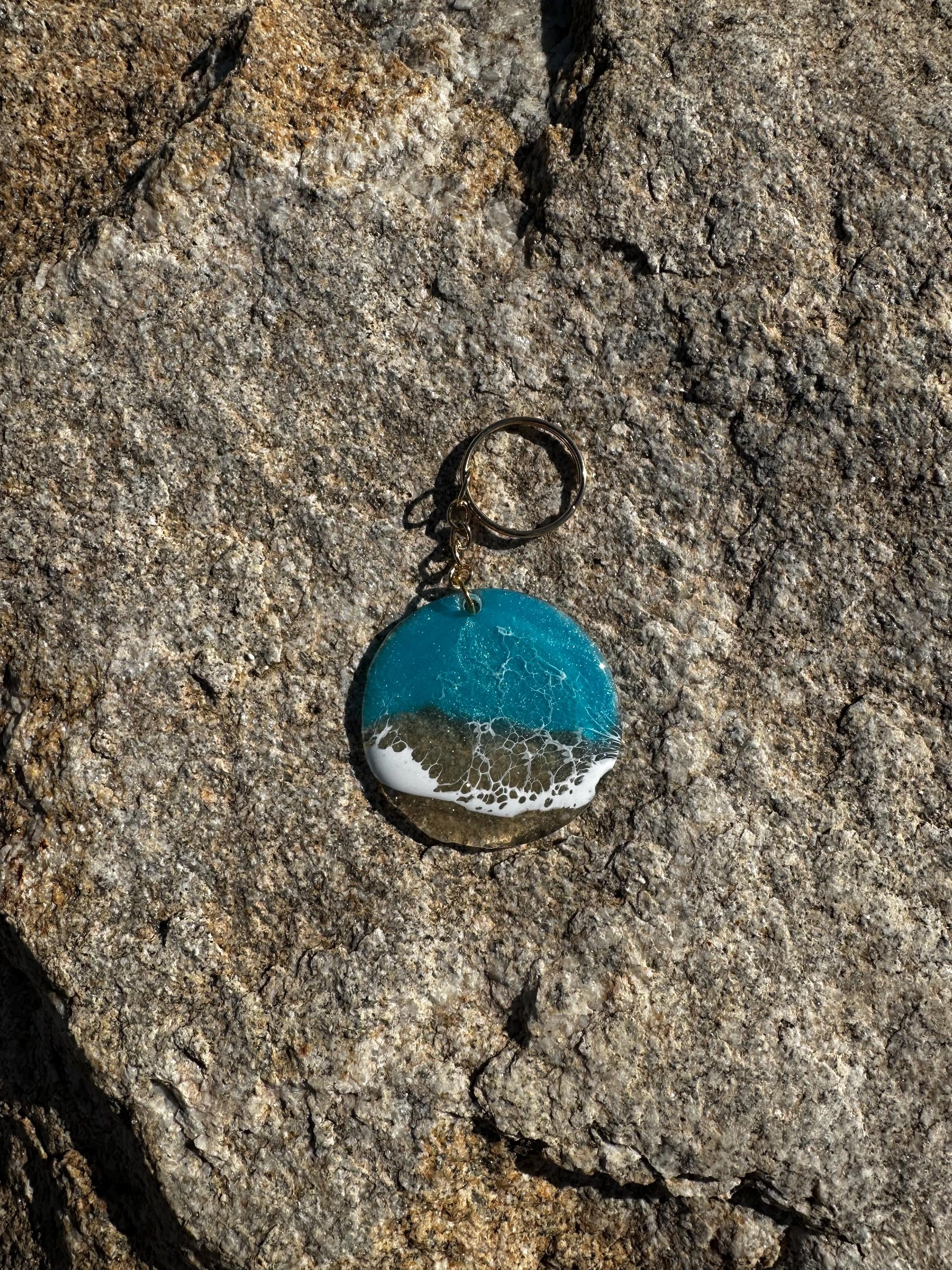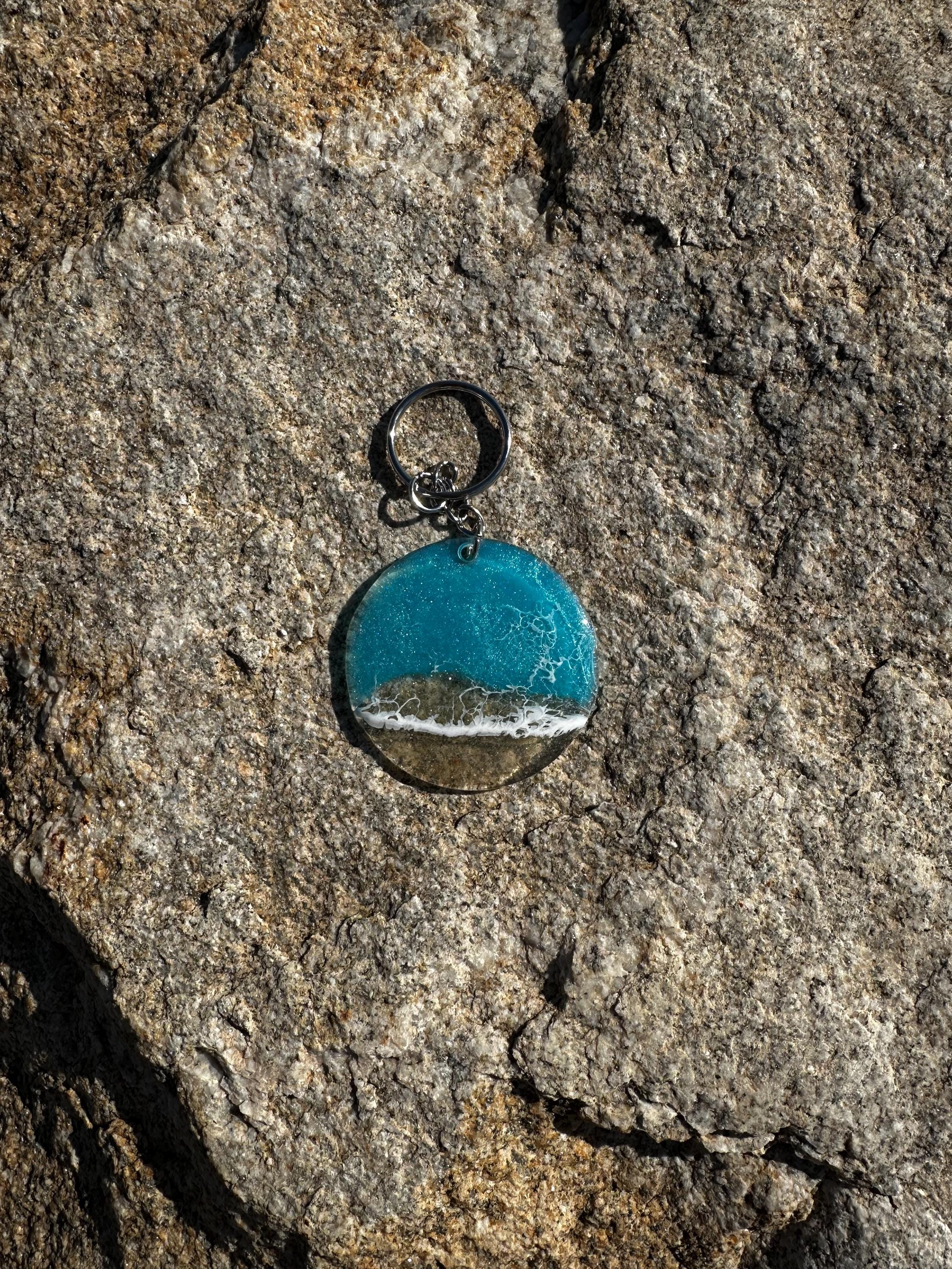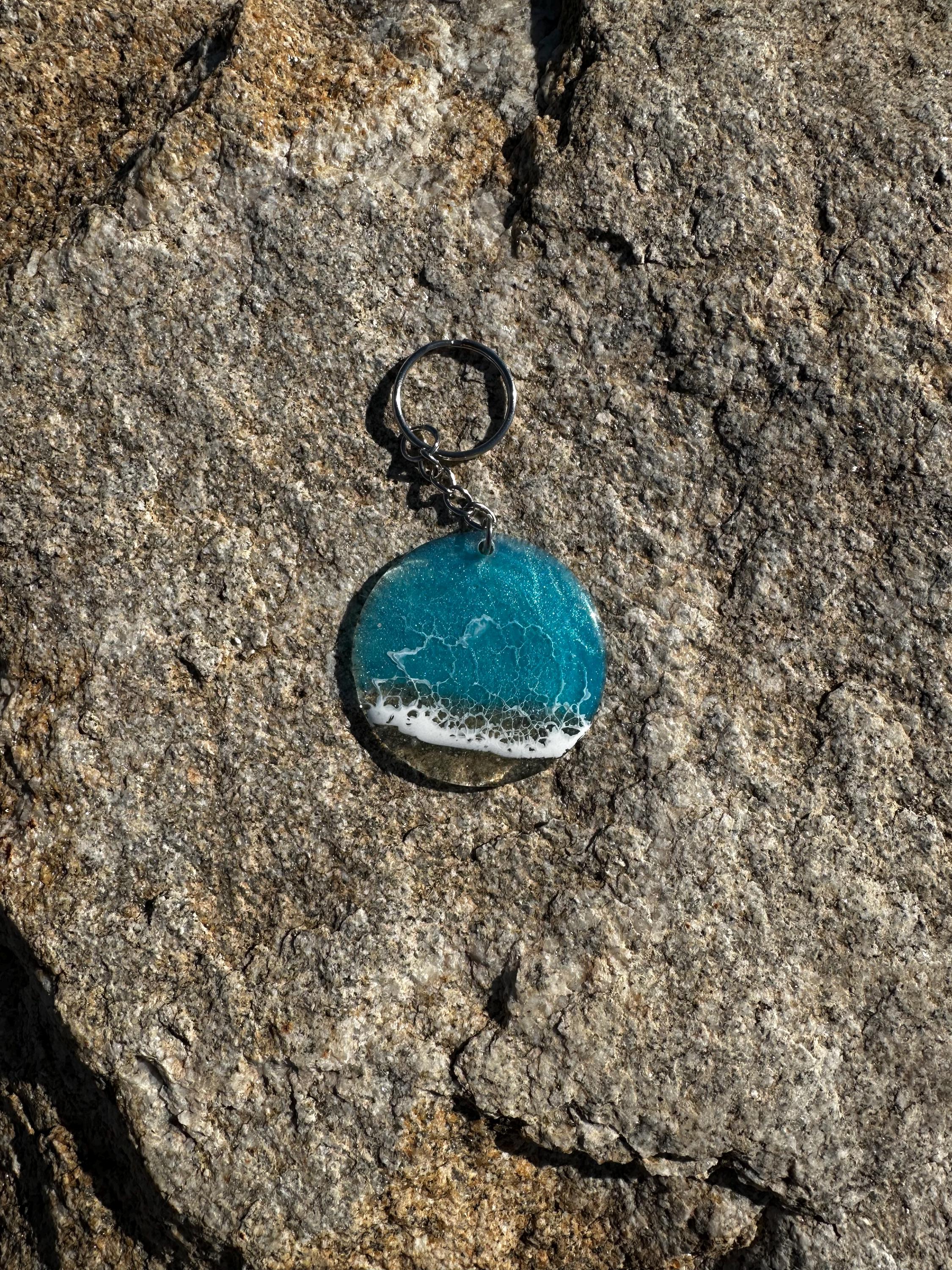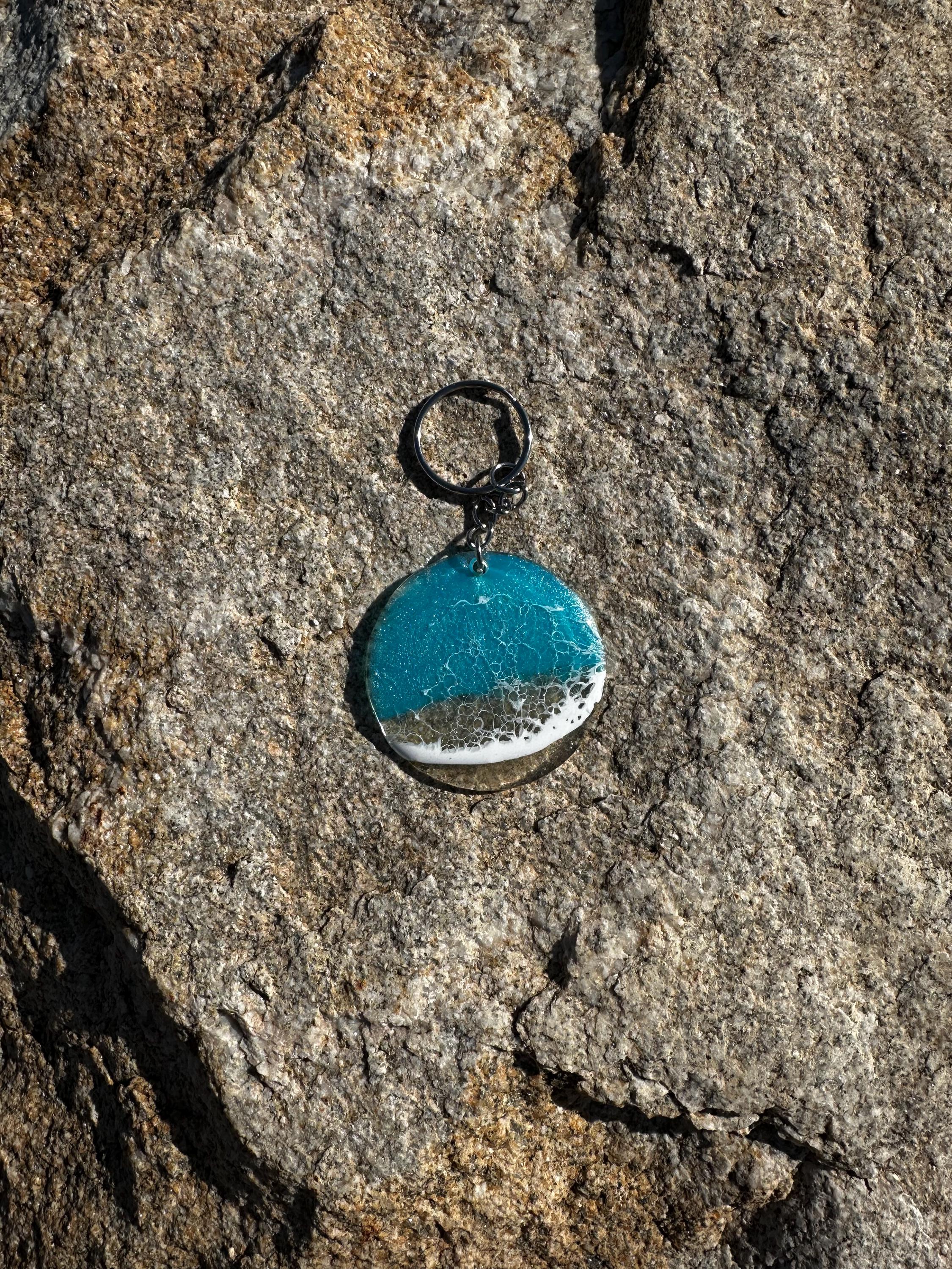 These little ocean keychains are resin poured on acrylic circles. Each keychain is a 2 in circle with the attached keychain so you can add it to your keyring or purse for decoration. Carry a piece of the tranquility of the ocean with you at all times.