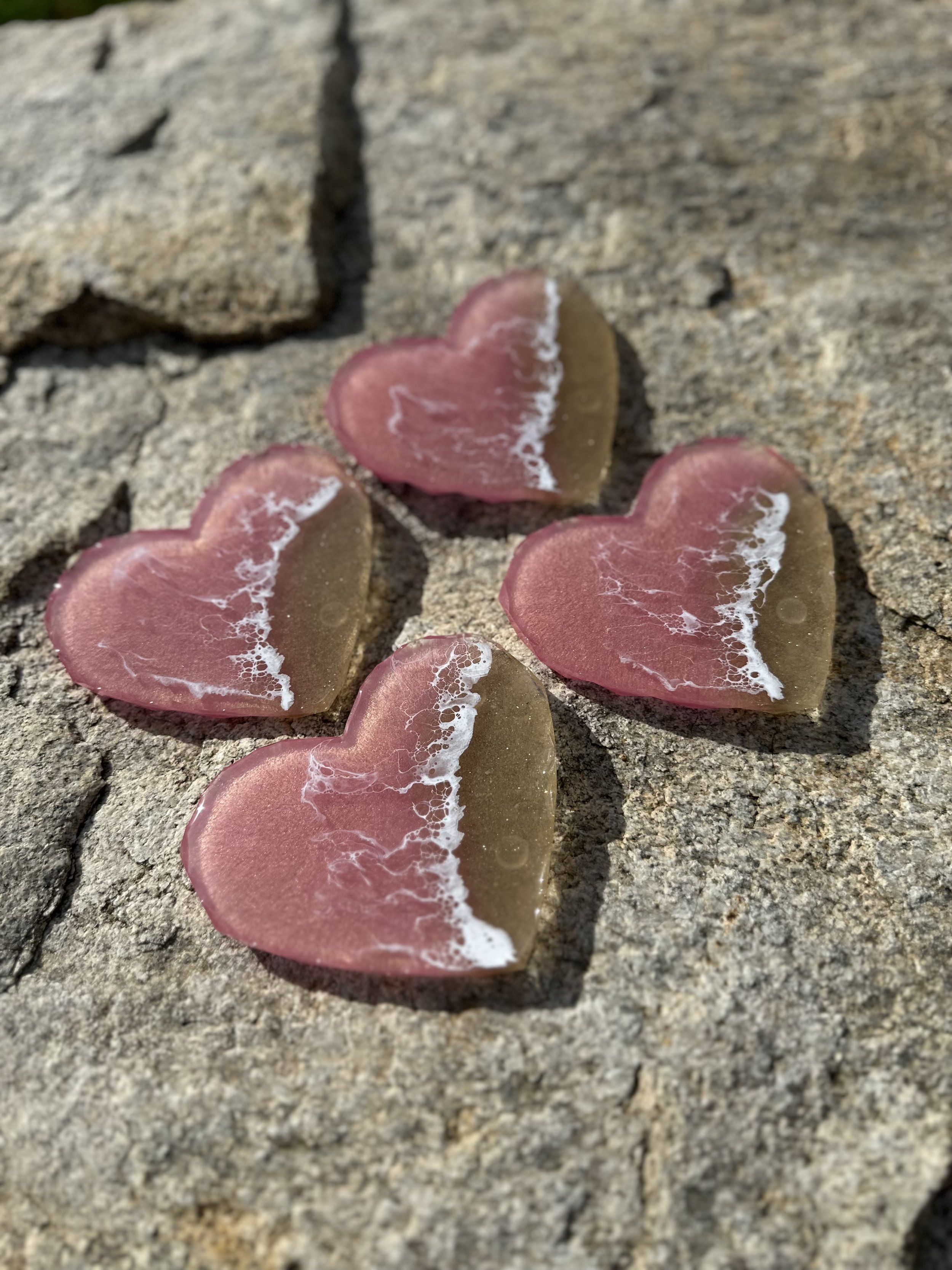 This is a gorgeous Heart Shaped Ocean resin Coaster set.
