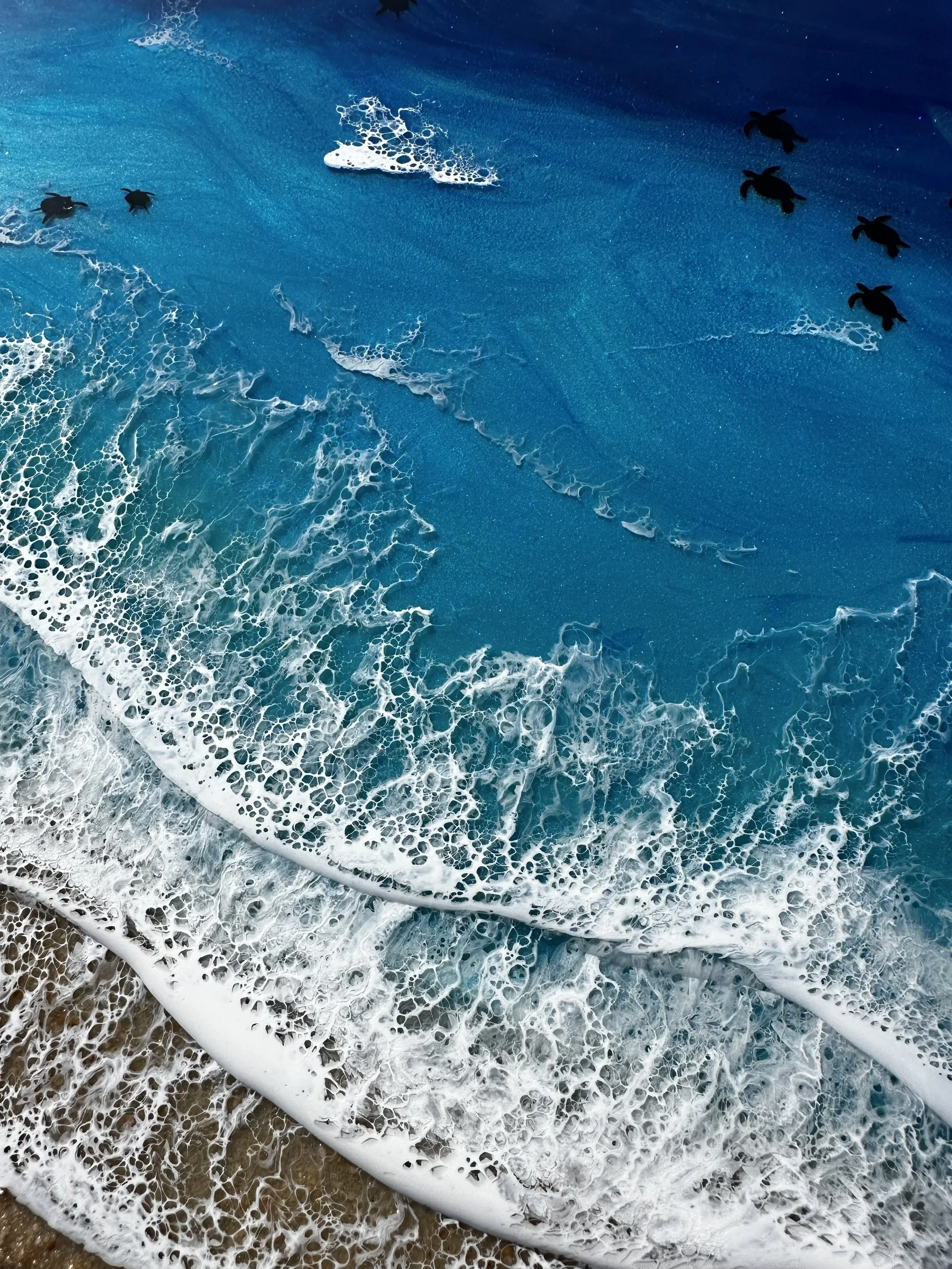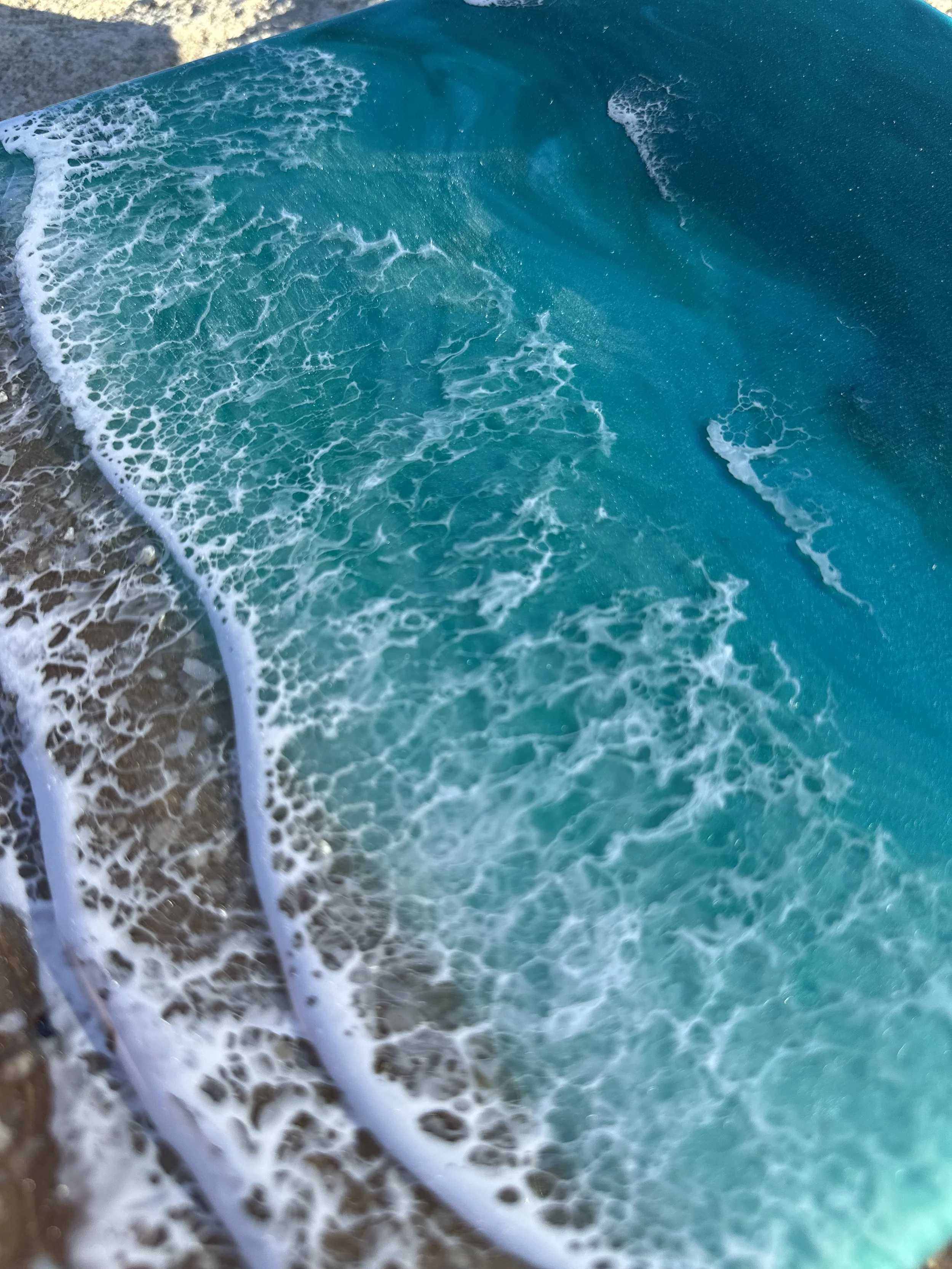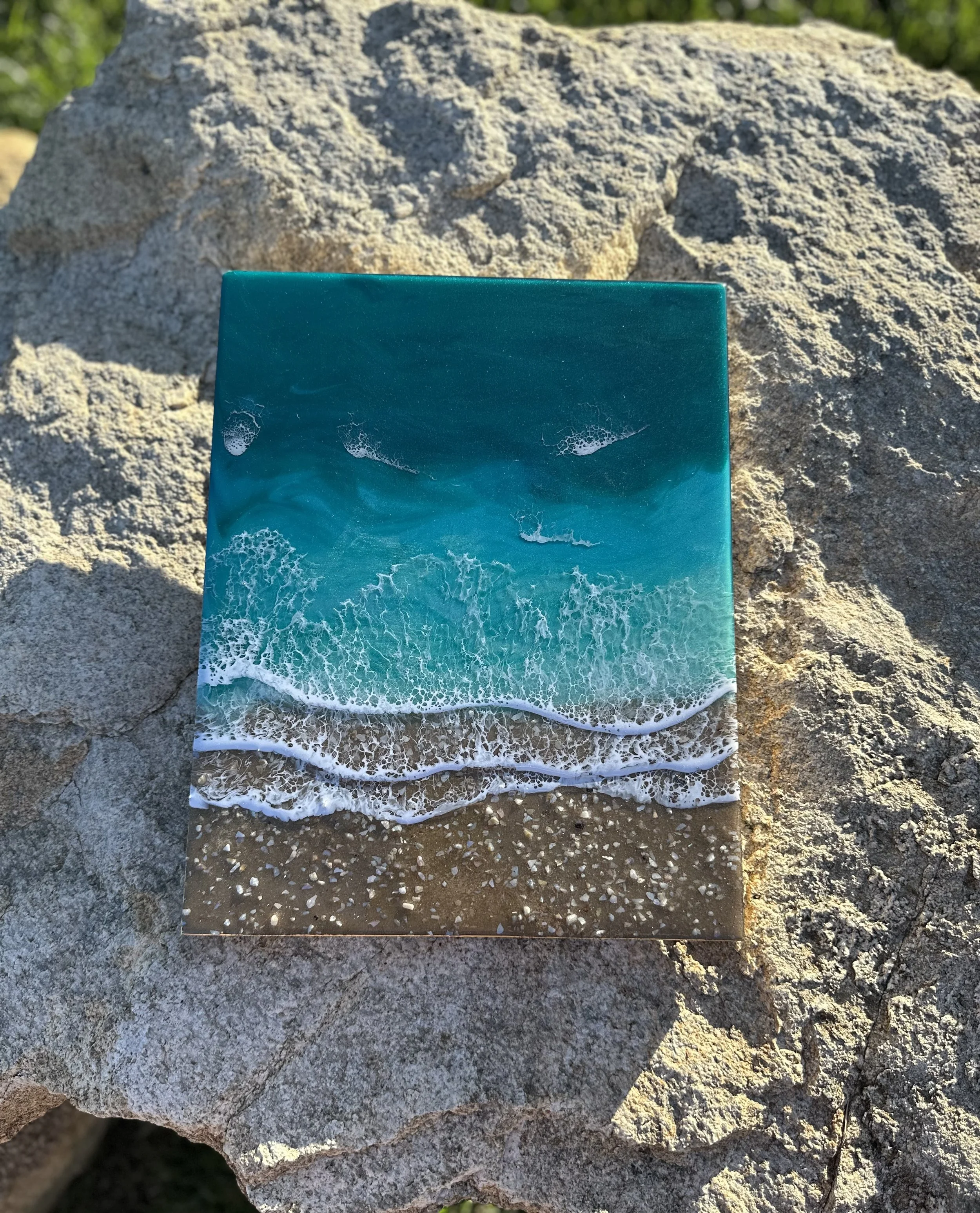 The meaning of Ohana is family. What could be more important. This is a beautiful reminder or our family while bringing a piece of the ocean into your heart. This is a wood cutout of the words Ohana which has been done as an ocean resin art piece mounted on a white 11×14 frame.
