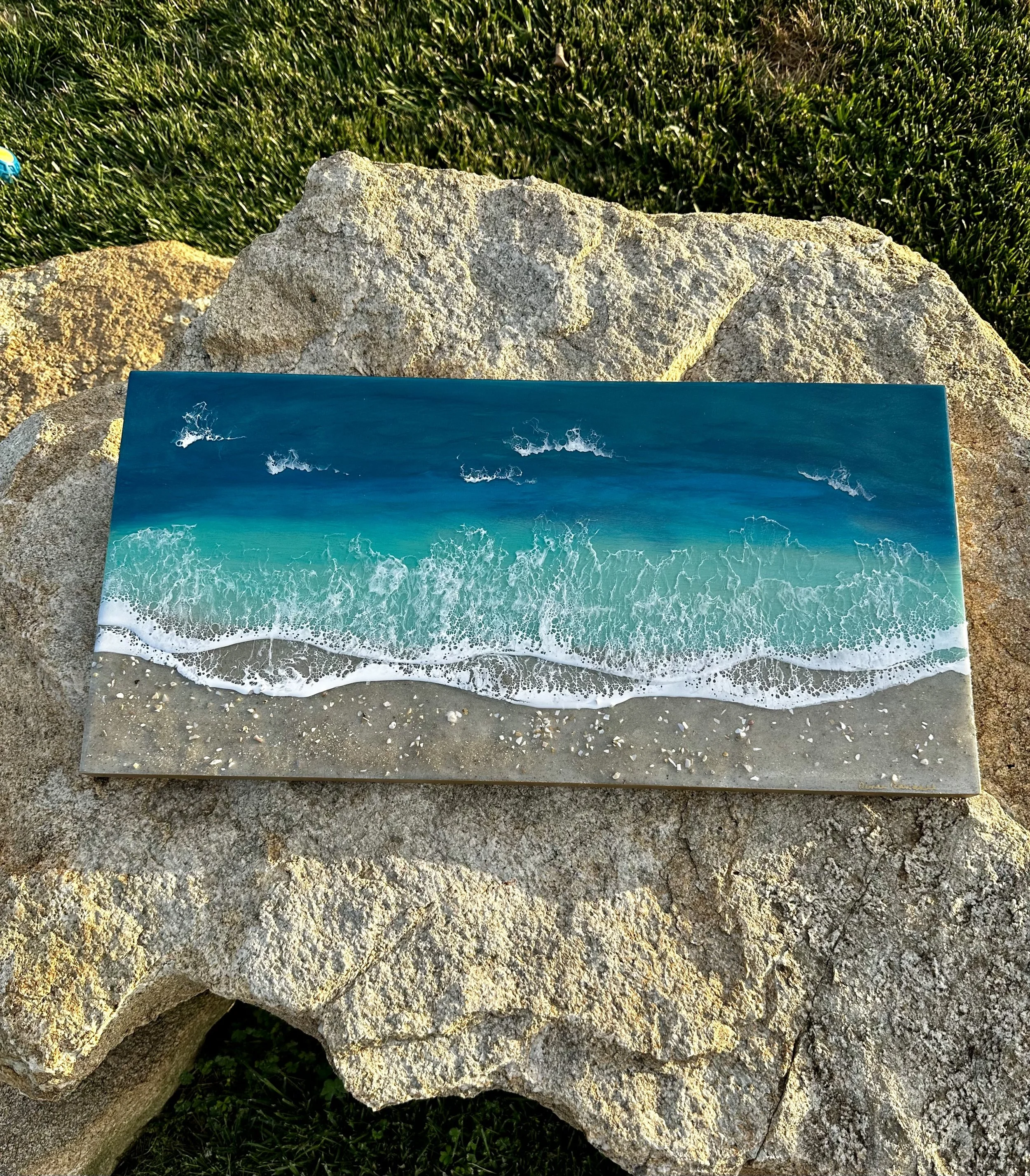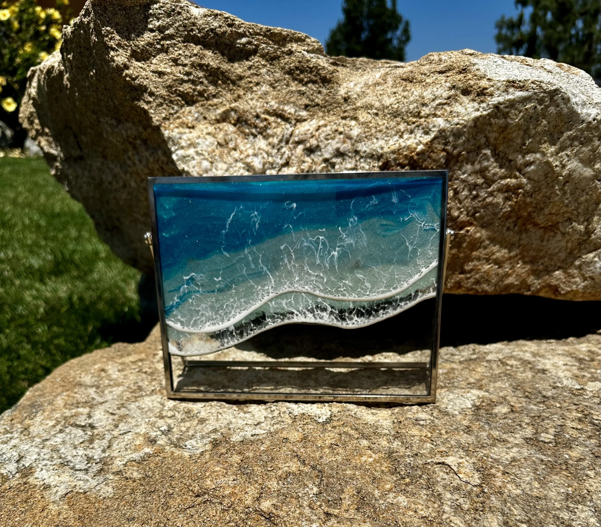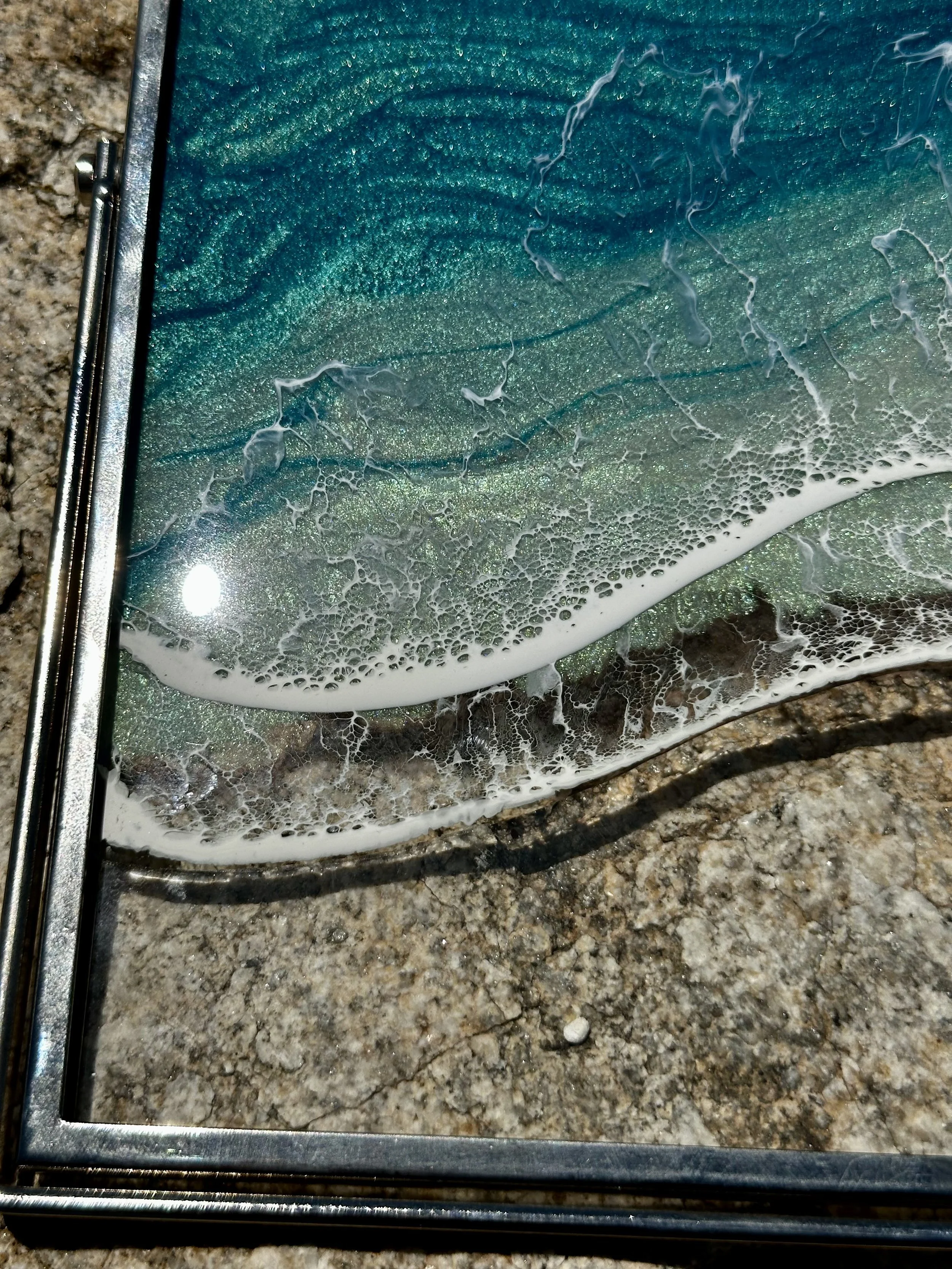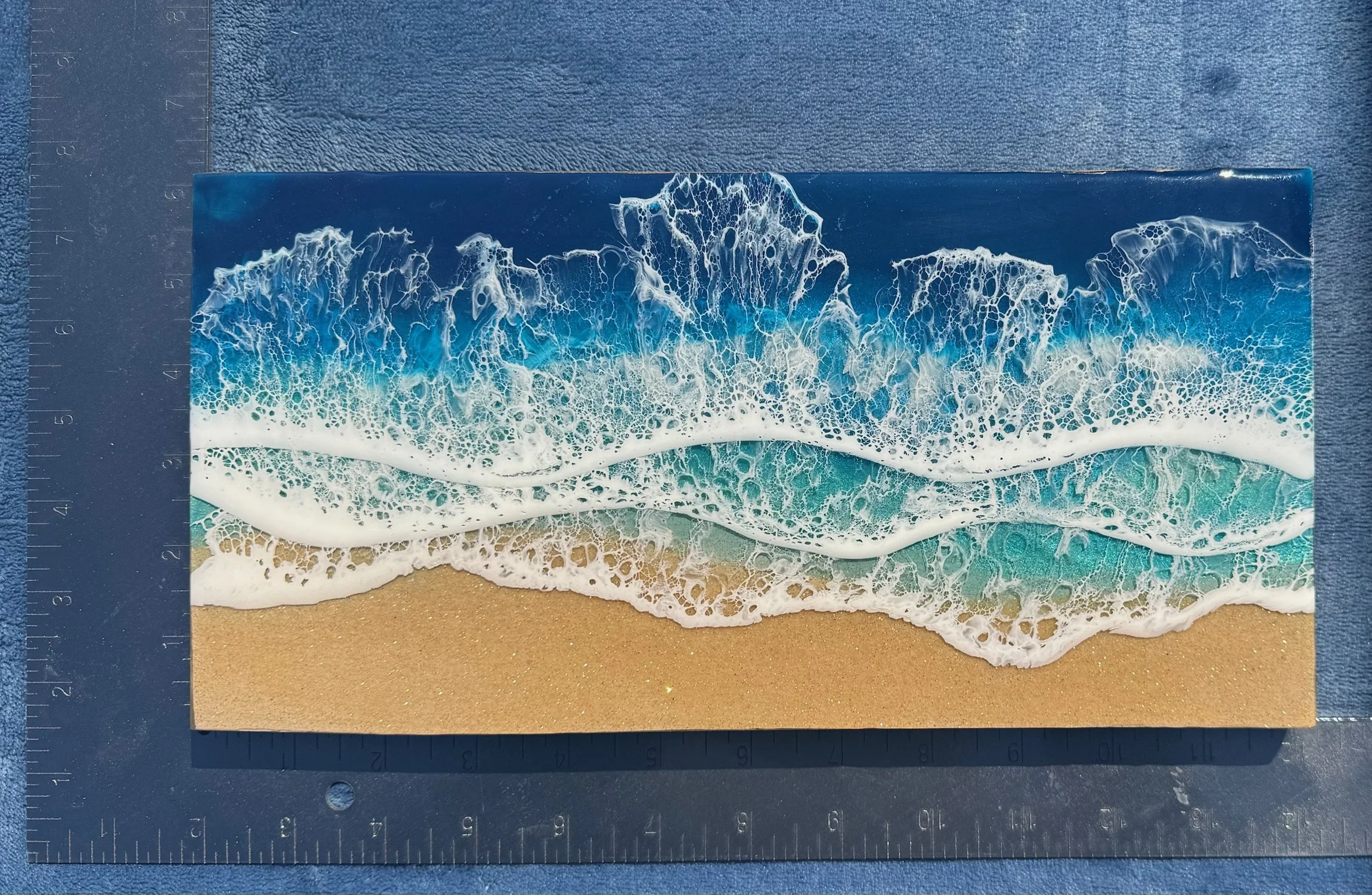 This is a completed item you will receive the one pictured. This scene is created using multiple layers of resin and pigments. The multiple layers help to create a very realistic ocean picture.