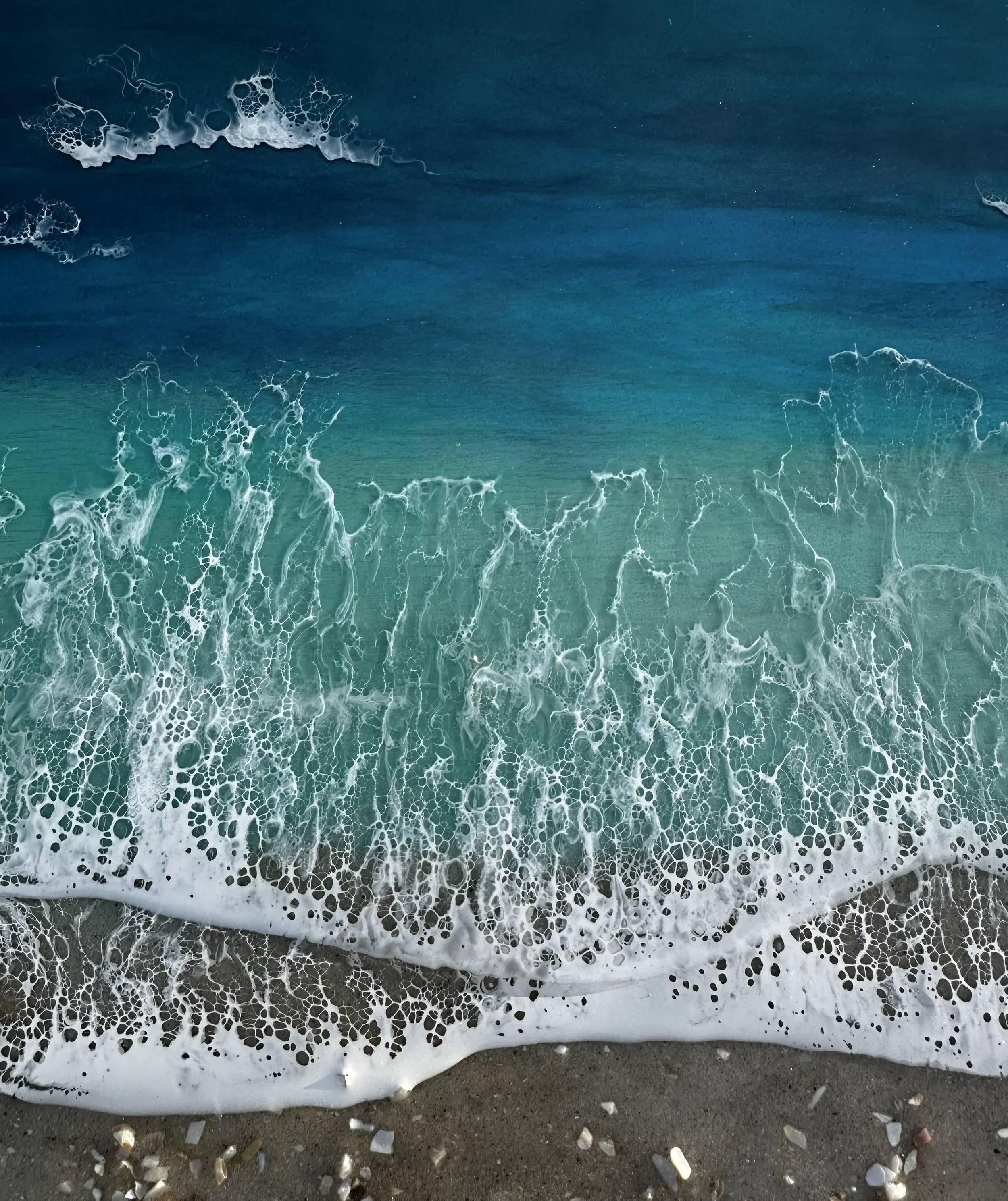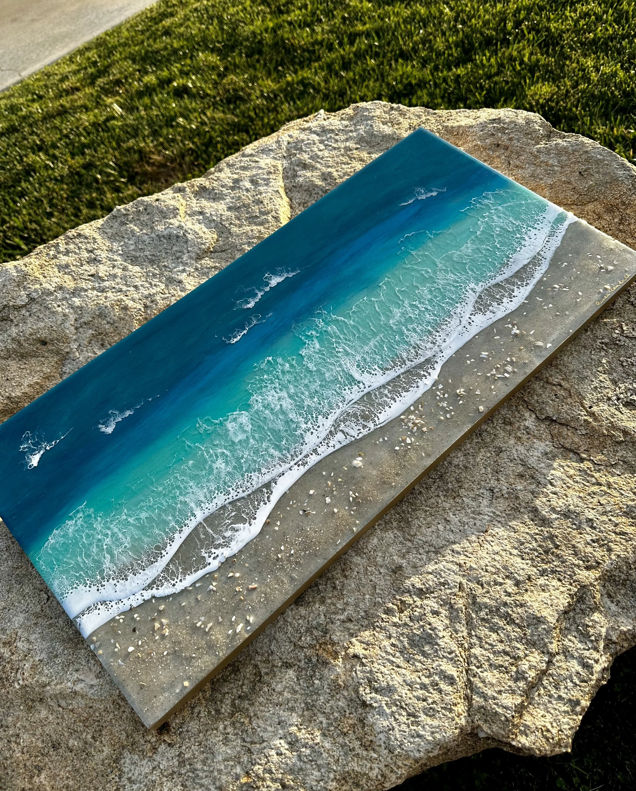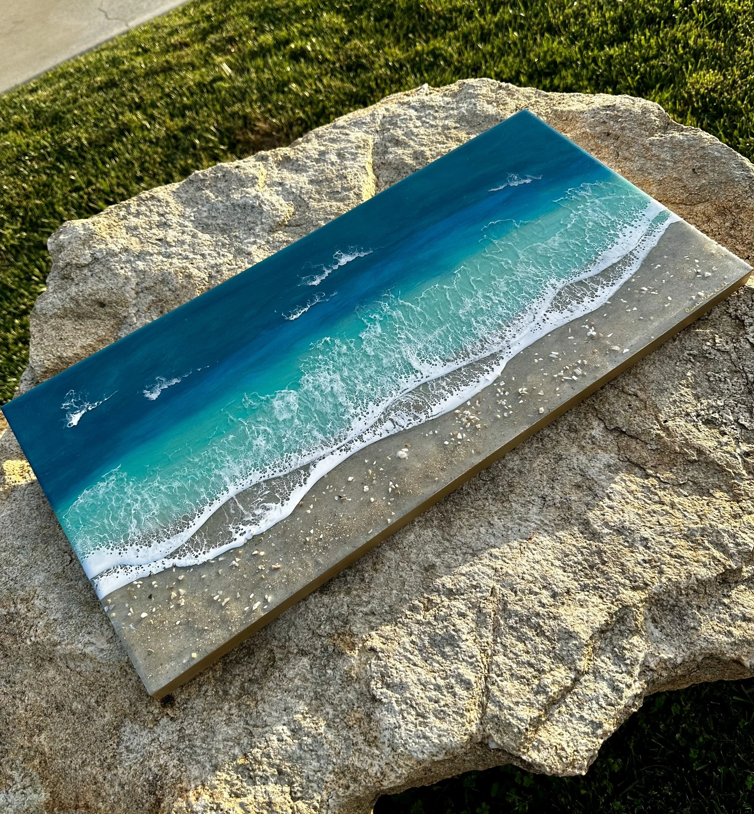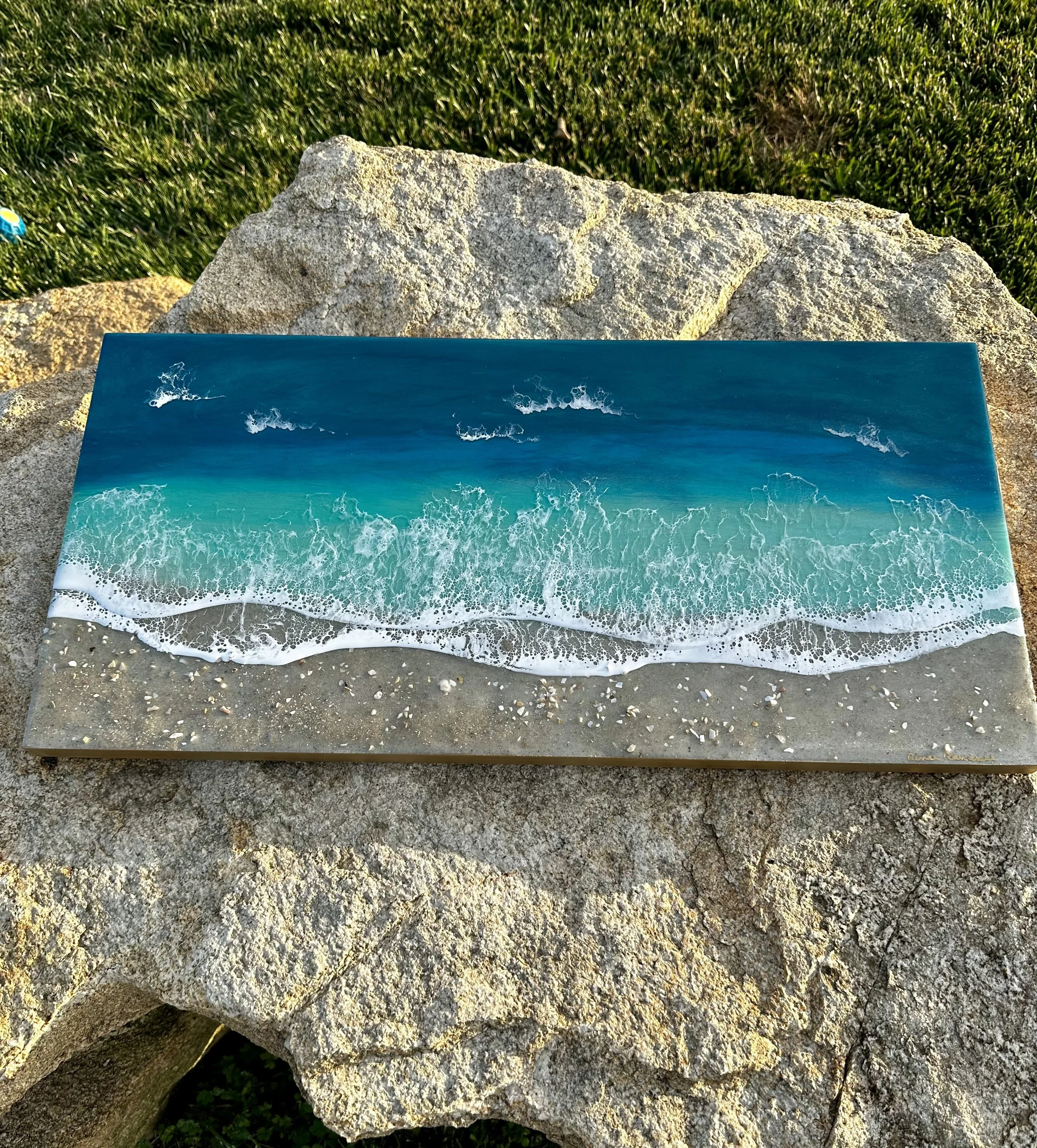 This is a completed item you will receive the one pictured. This scene is created using multiple layers of resin and pigments. The multiple layers help to create a very realistic ocean picture.