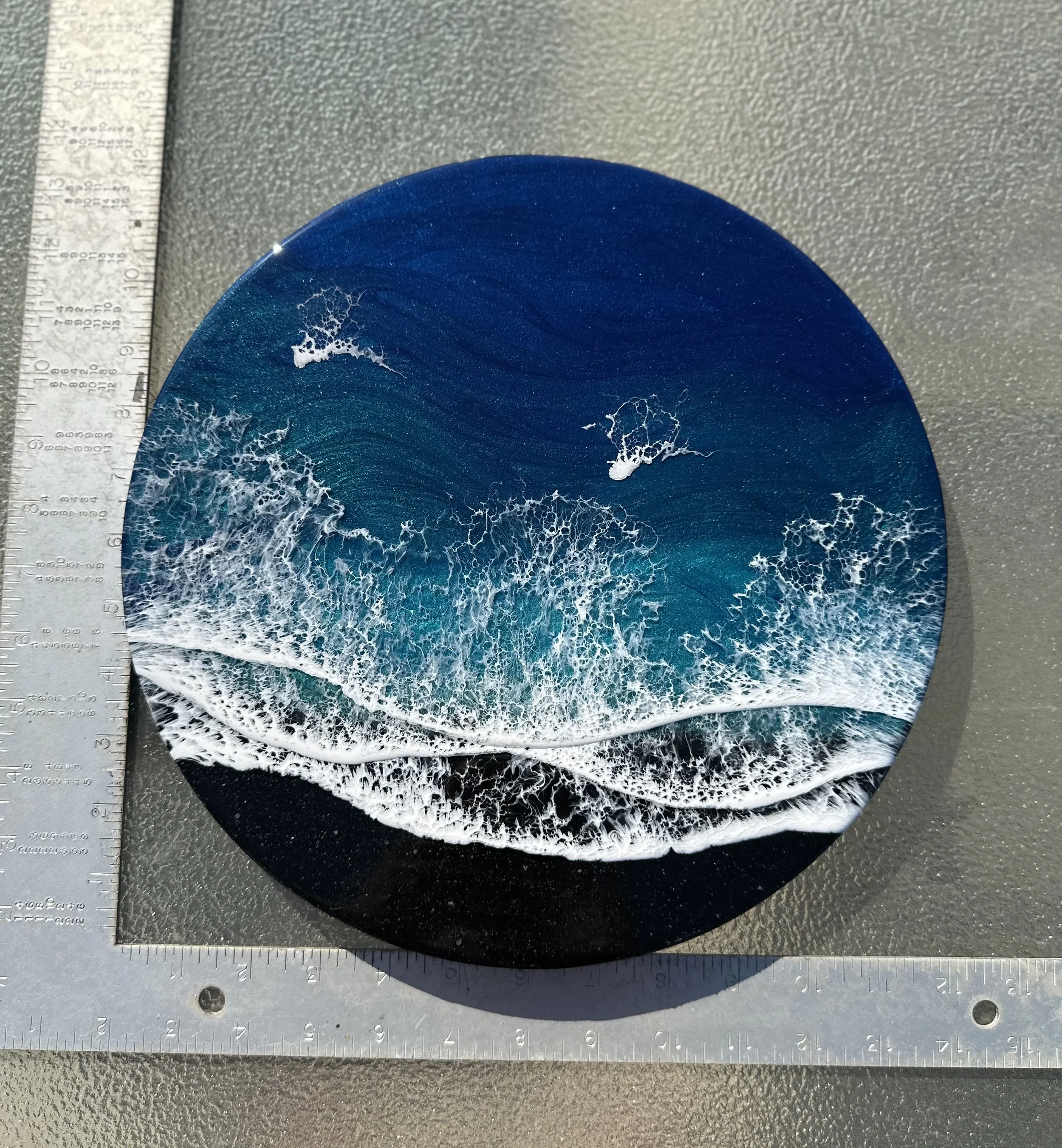 Round Ocean Painting 12 inch— Iridescent Teals